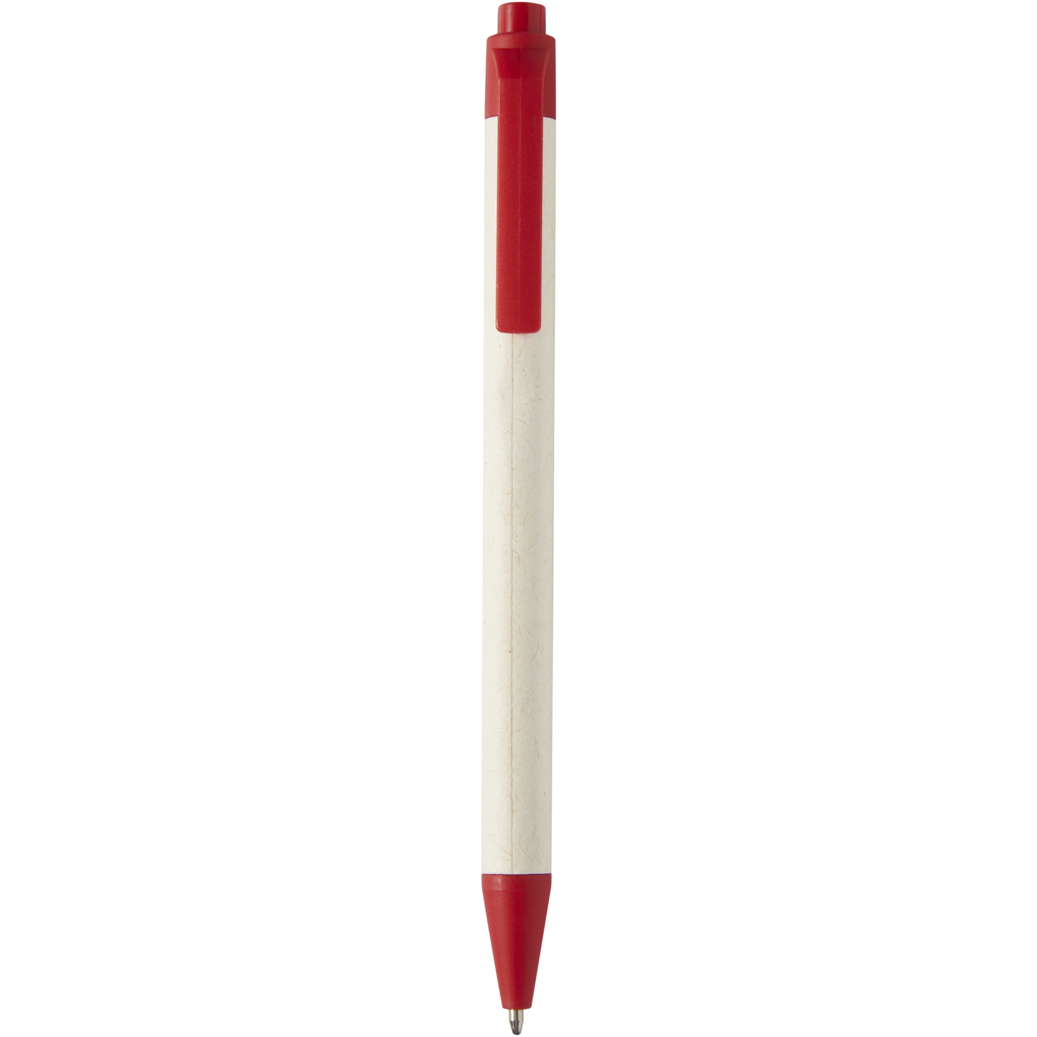 Kuulakärkikynä napsautusmekanismilla ja kierrätetyistä maitotölkeistä valmistetulla varrella (jopa 70 %). Painike, klipsi ja kärki ovat valmistettu PLA-muovista. Käytetyt maitotölkit kerätään, lajitellaan, käsitellään ja muutetaan paperiksi, jolloin jäte todella pääsee hyötykäyttöön.