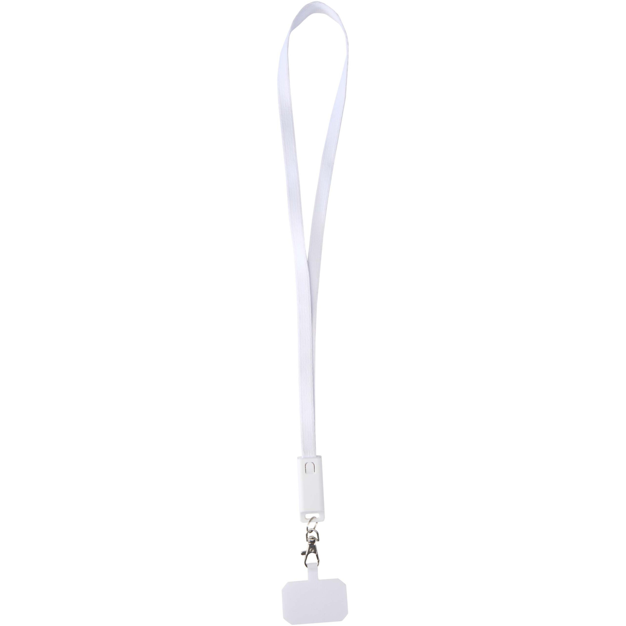 Franz kierrätetystä muovista valmistettu älypuhelinkaulanauha, jossa on sisäänrakennettu datasynkronointi- ja 65 W:n 5-in-1-pikalatauskaapeli