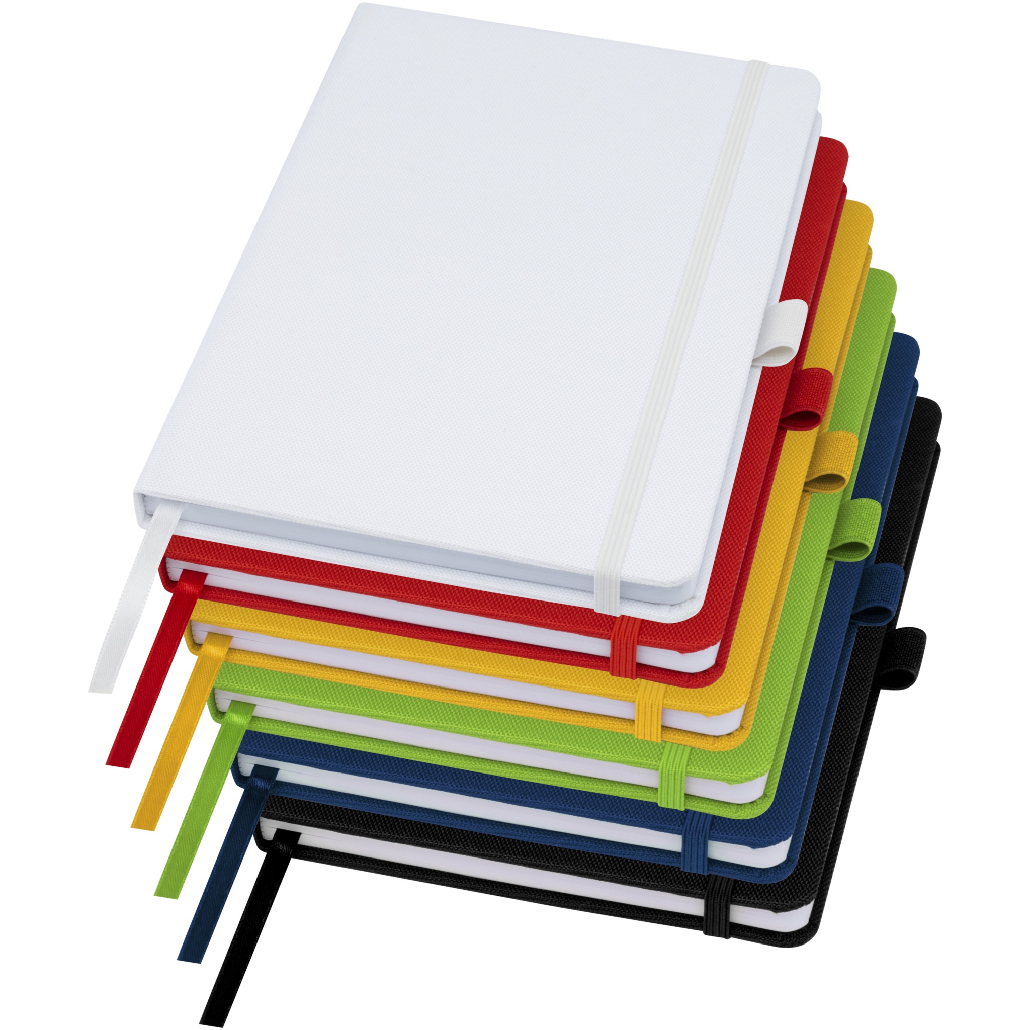 A5-kokoinen muistikirja, jonka kansi on valmistettu RPET-materiaalistq. Sisältää 80 arkkia 70 g/m² kierrätyspaperia valmiilla viivoilla, kynänpidikkeellä ja nauhamerkillä. Voidaan yhdistää 107757 Honua RPET -kuulakärkikynän kanssa.