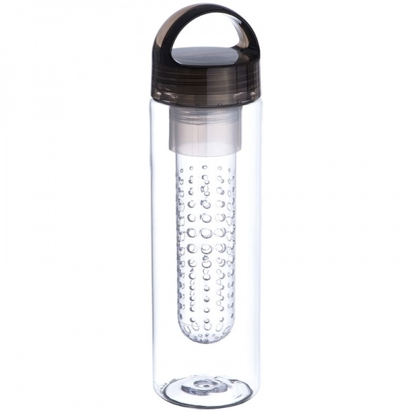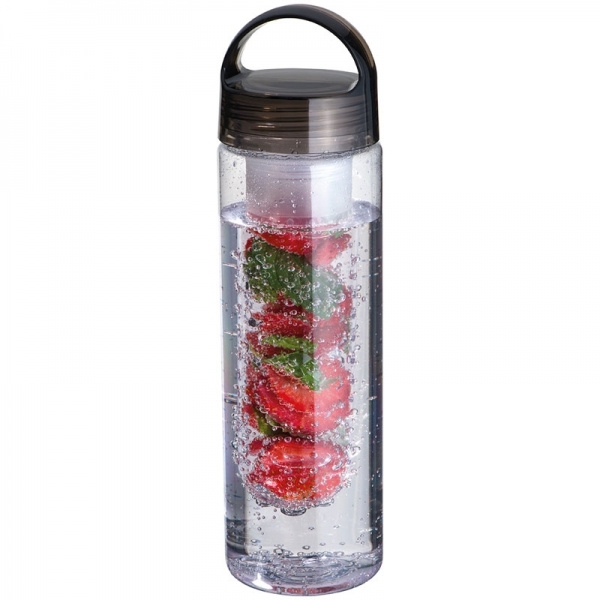 Muovinen juomapullo, jossa infusori (esim.) hedelmille ja tilavuus 650 ml. Painamme logosi pulloon.