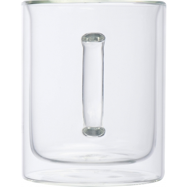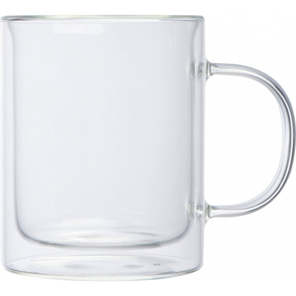 Borosilikaattilasista valmistettu kaksiseinämäinen kuppi, jonka täyttökapasiteetti on 350 ml. Painamme logosi kuppiin keraamisella siirrolla. Monipuolinen tulostus mahdollista pyynnöstä.