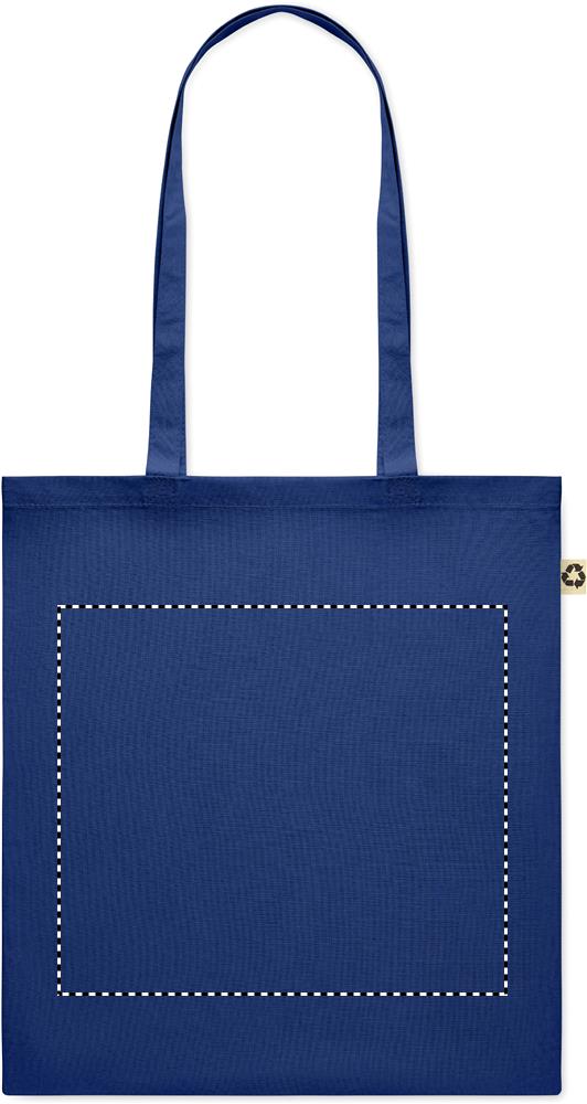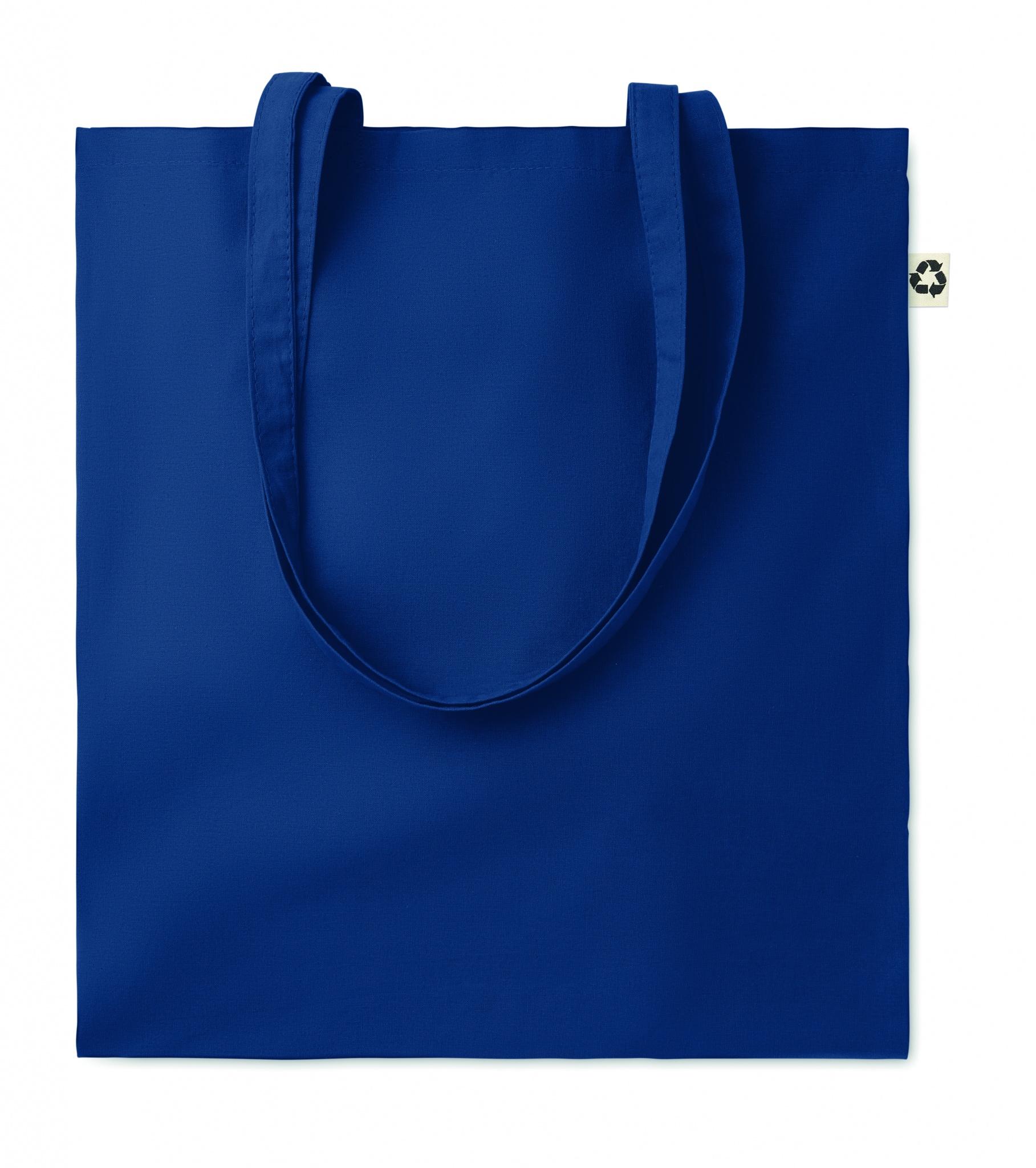 140 gr/m² kierrätetystä puuvillasta valmistettu kassi (65 % kierrätettyä puuvillaa, 35 % tavallista puuvillaa), pitkillä kahvoilla.
