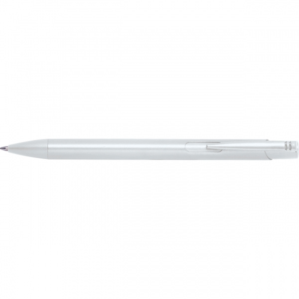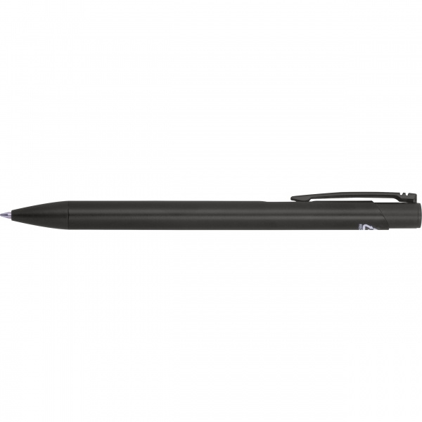 Kierrätetystä alumiinista valmistettu värillinen kuulakärkikynä, jossa on sinisellä kirjoitettava suurikapasiteettinen täyttöpakkaus. Logosi on kaiverrettu laserkaiverruksella klipsin alle.