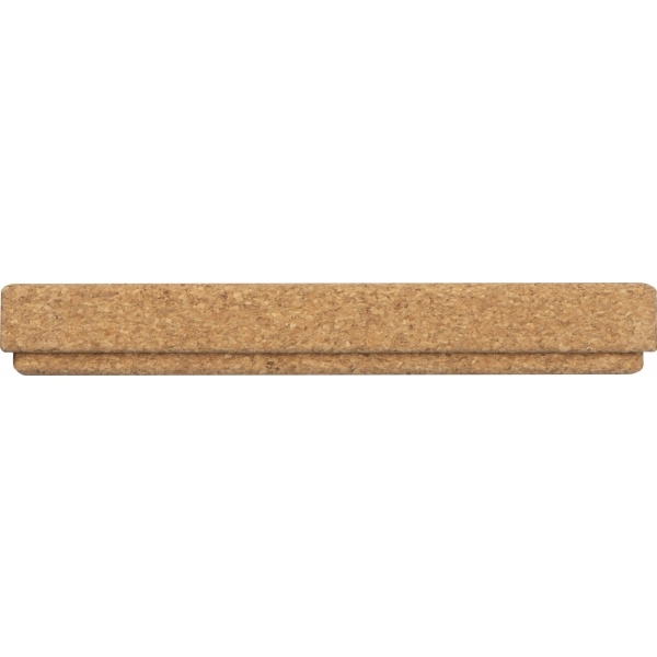 Laadukas kierretoiminen metallinen kuulakärkikynä korkkipinnoitteella, sinikirjoitustäyttö kotelossa, joka on myös korkkia. Logosi kaiverretaan klipin viereen.