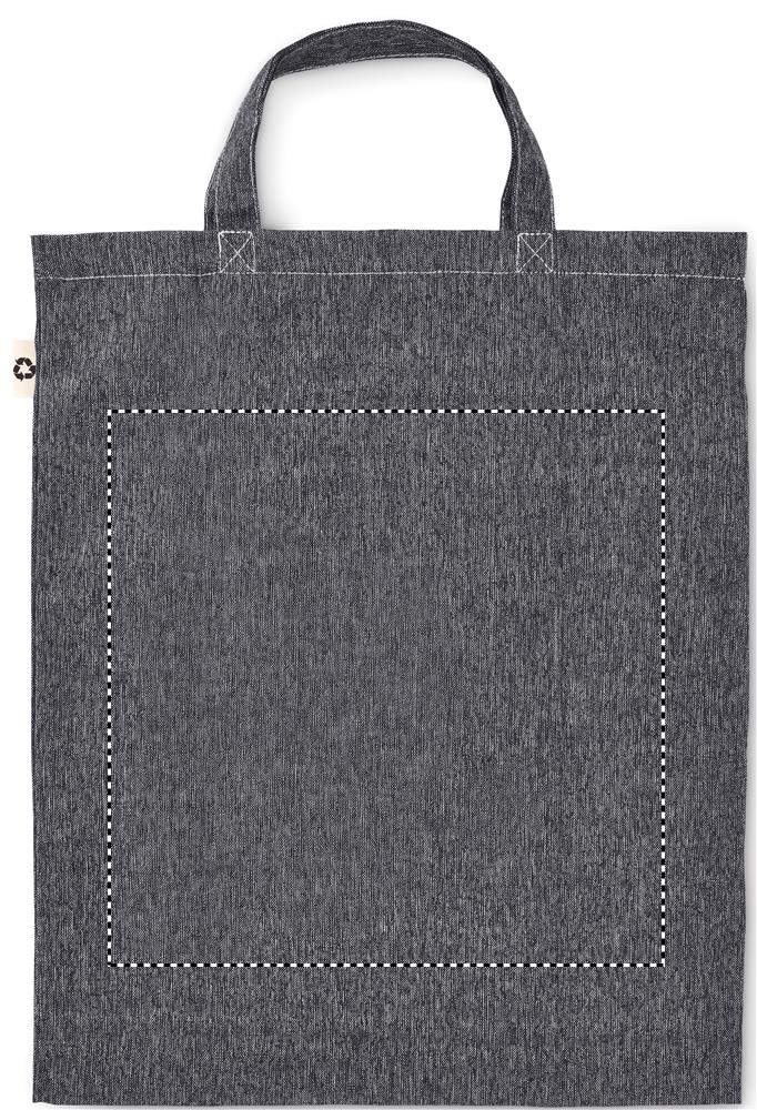 140 gr/m² kaksisävyinen kokoontaitettava kassi, valmistettu kierrätetystä puuvillasta ja polyesteristä (20%/80%). Tuota voi kutistua painossa, maksimi kanto painoraja 2,5 kiloa.
