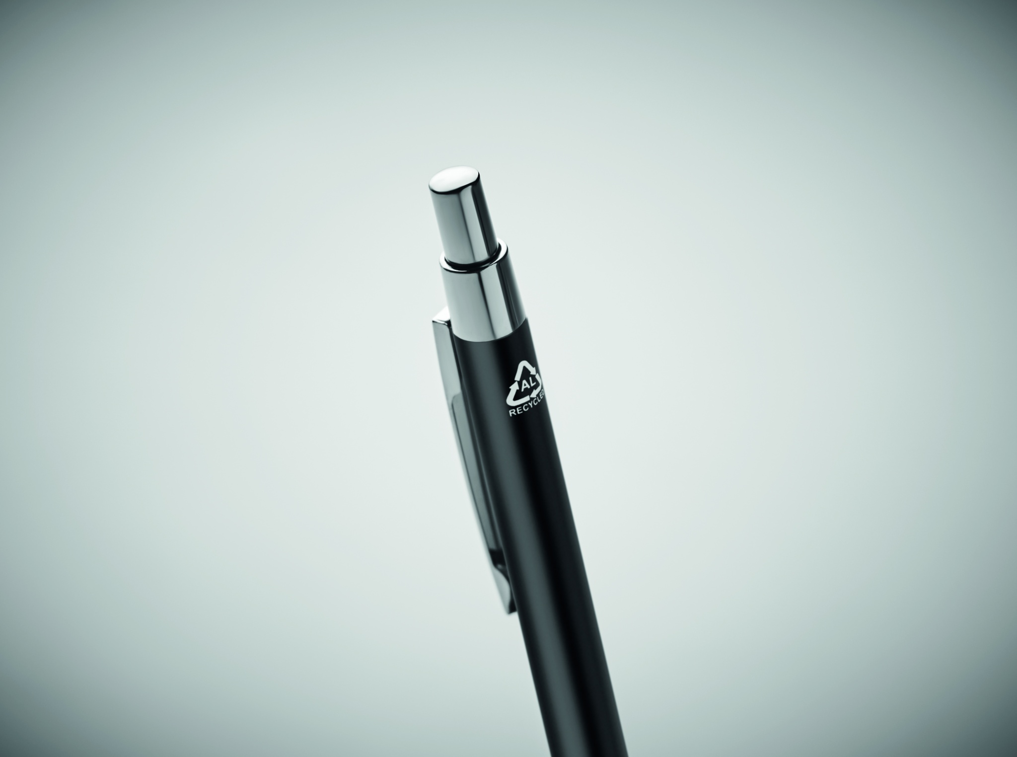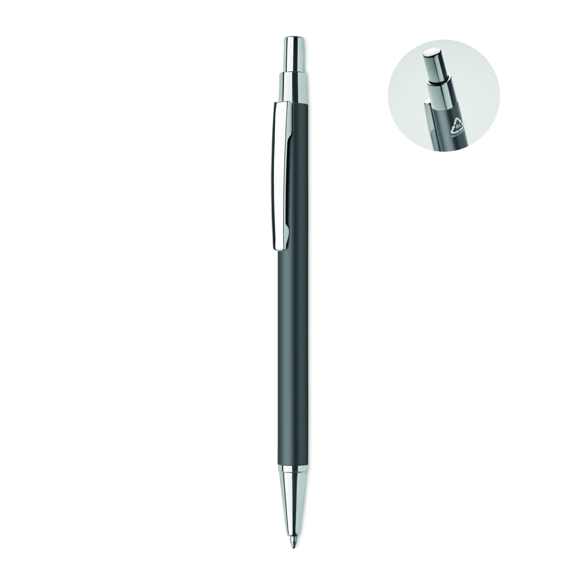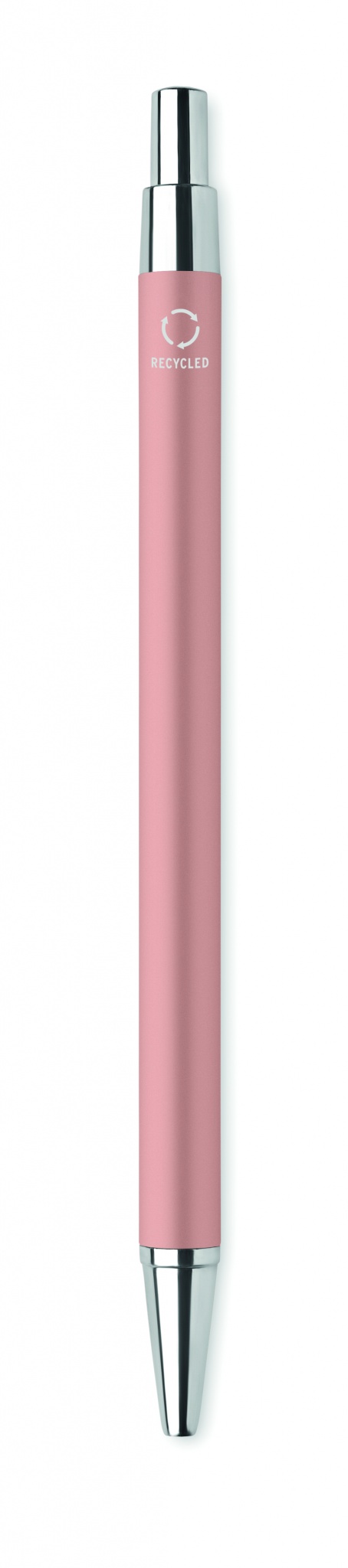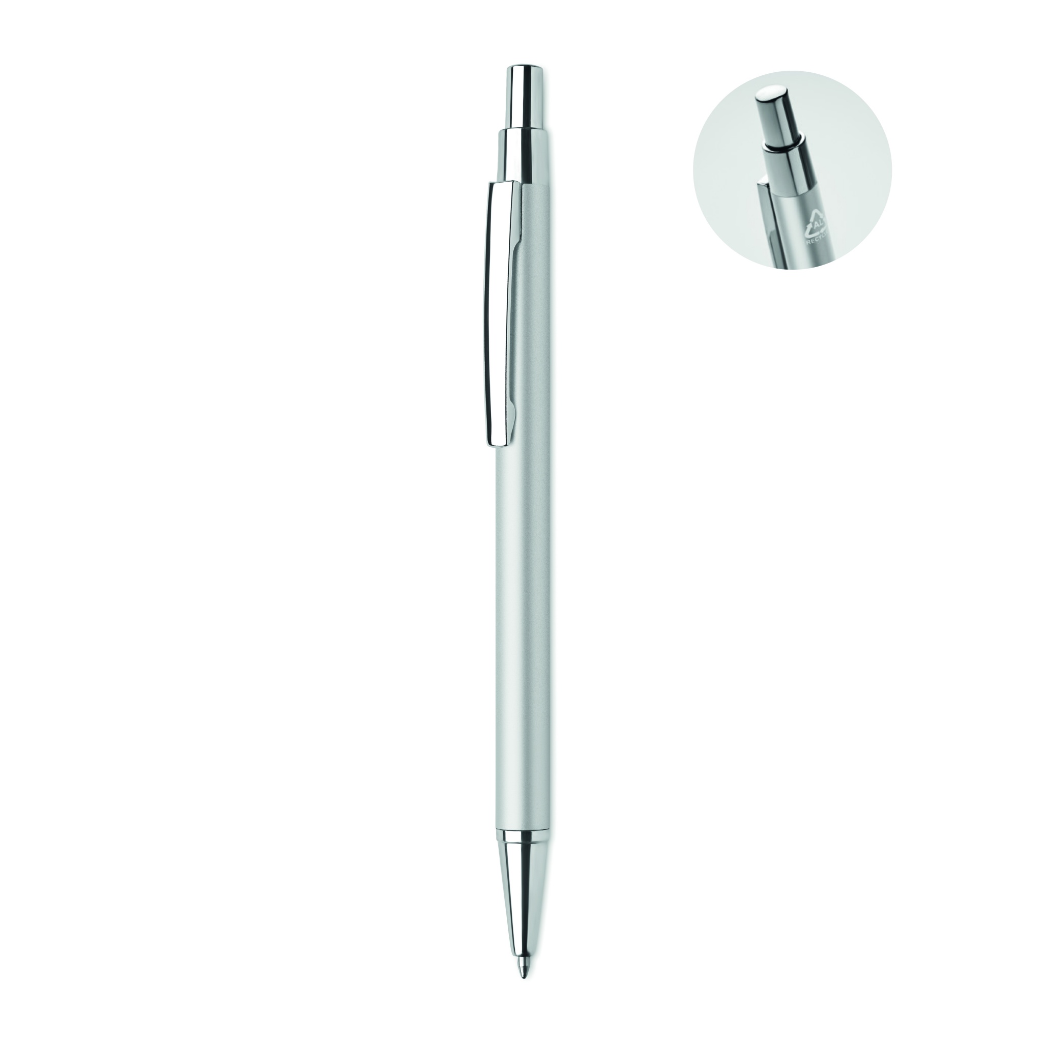 Kierrätetystä alumiinista valmistettu kuulakärkikynä sinisellä musteella.