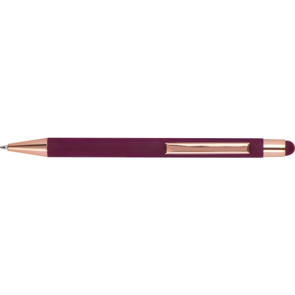 Alumiinista valmistettu kuulakärkikynä kumipinnoitteella, ruusukultakoristeilla ja kosketuskynä. Se on varustettu sinikirjoituksella suuren kapasiteetin muovilla. Kaiverrusväri: hopea
