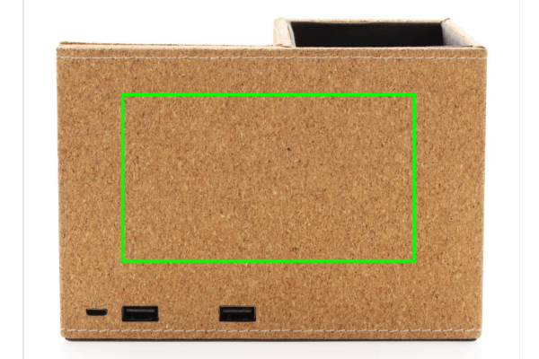 5W langaton laturi kynäpidikkeellä, valmistettu luonnonkorkista. 150cm vehnänolkea (15%) vehnänolkea sekoitettuna micro TPE kaapeliin. Sopii yhteen kaikkien QI-sopivien laitteiden, kuten uusimpien Android- ja iPhone puhelimien, kanssa. Tuotteen takapuolella on kaksi USB A ulostuloliitintä langallista latausta varten. Sisääntulo: 5V/2A, langaton ulostulo: 5/1A - 5W. 2x USB ulostulo 5V/2A; Tuote ja lisätarvikkeet 100% PVC-vapaita.