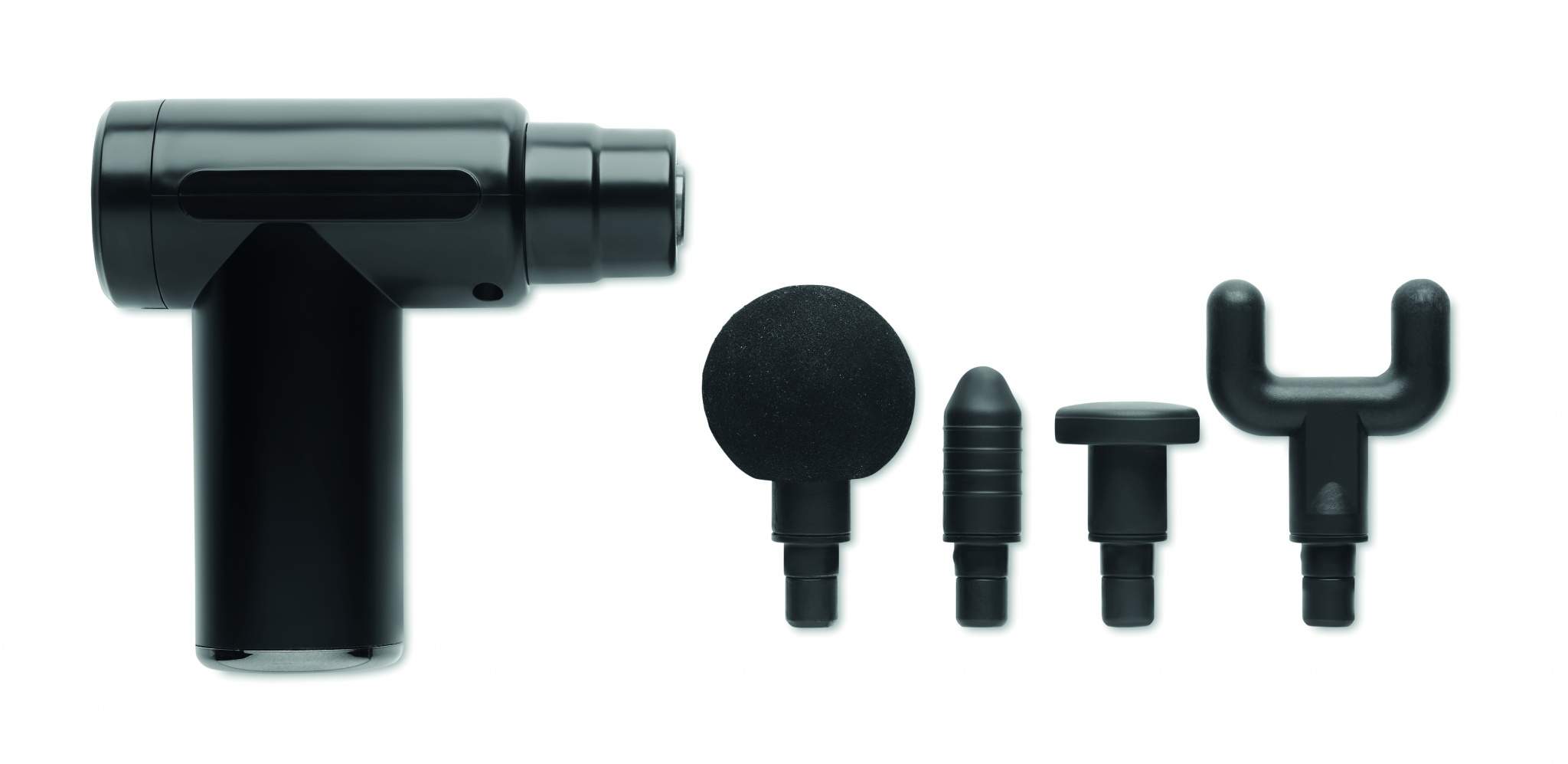 ABS-muovista valmistettu lihashuoltovasara, jossa on neljä erilaista vaihdettavaa hierontapäätä, kuusi eri nopeutta. Sisältää ladattavan 1200 mAh:n litiumakun.