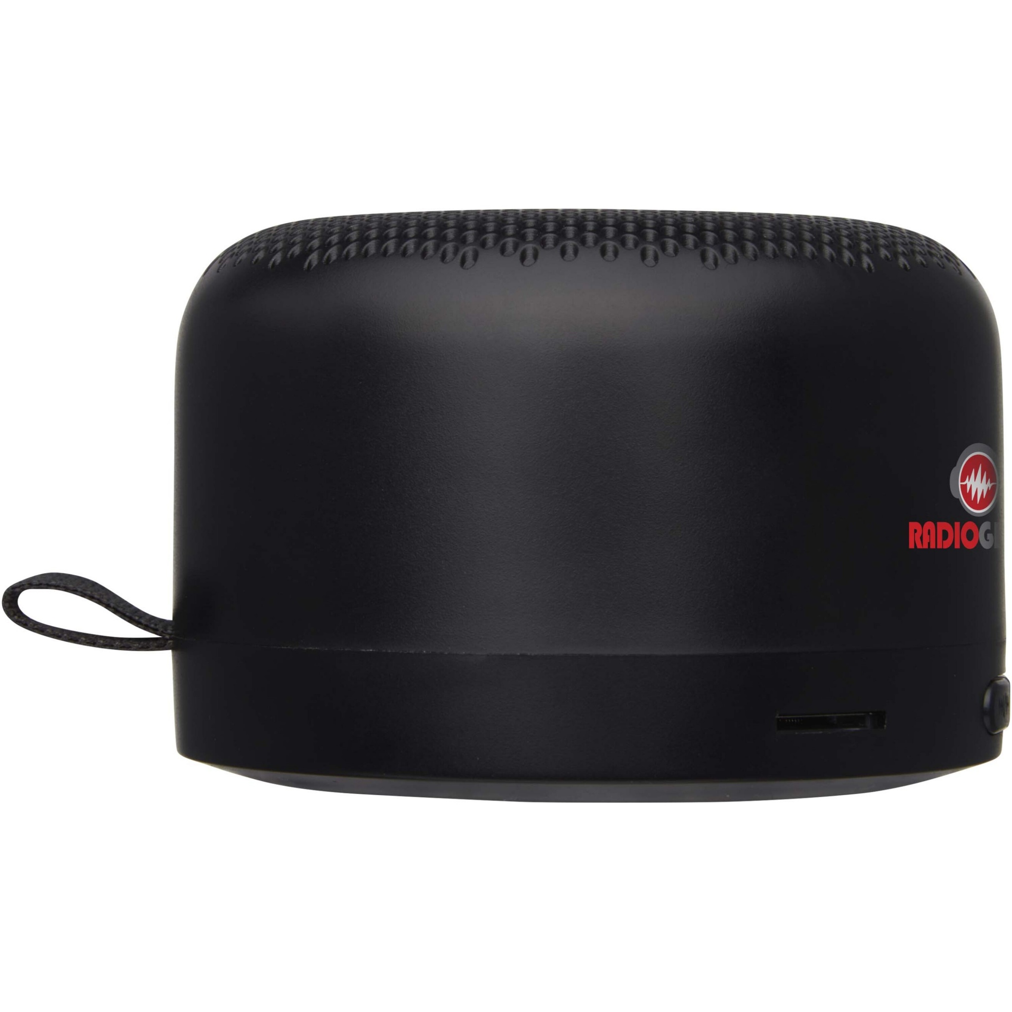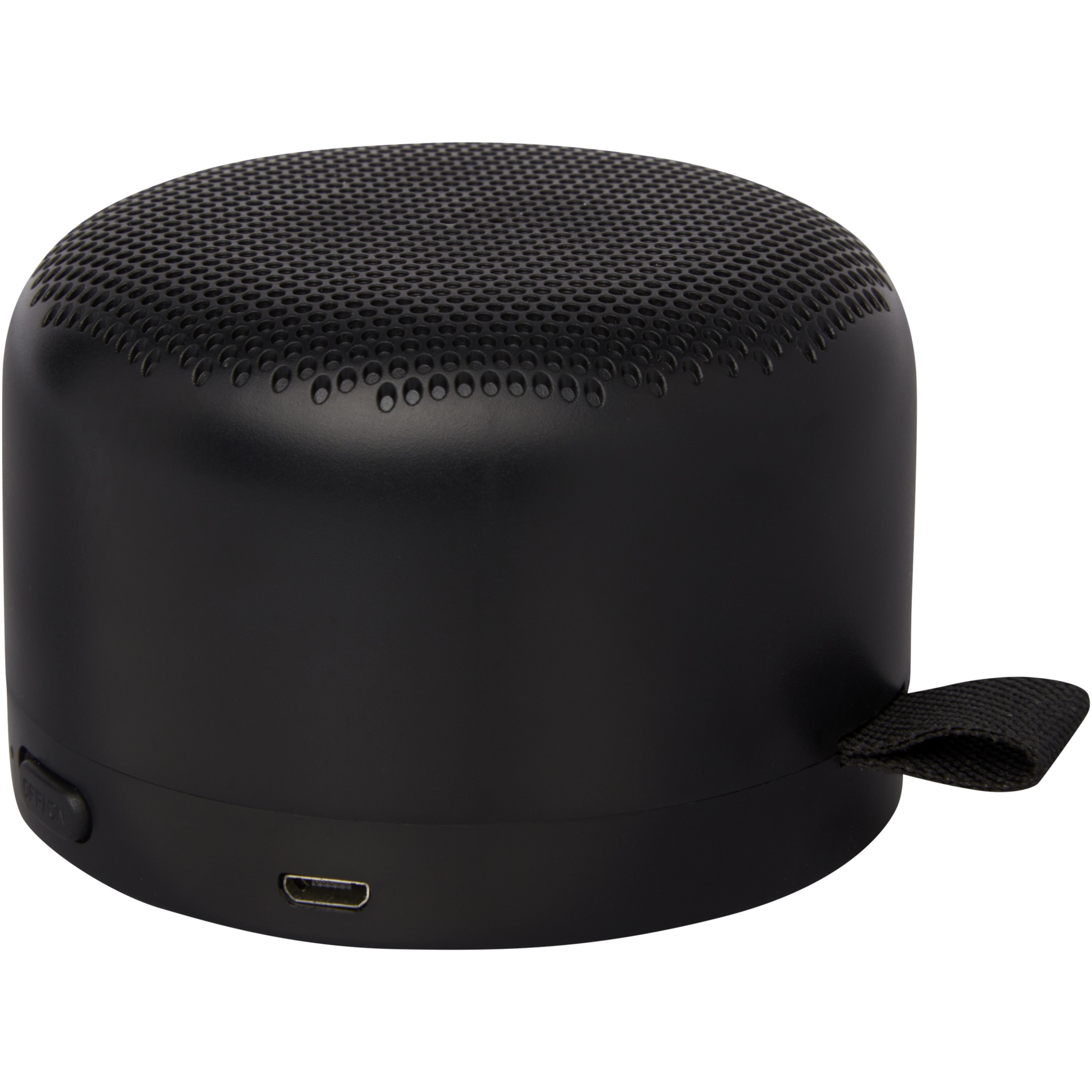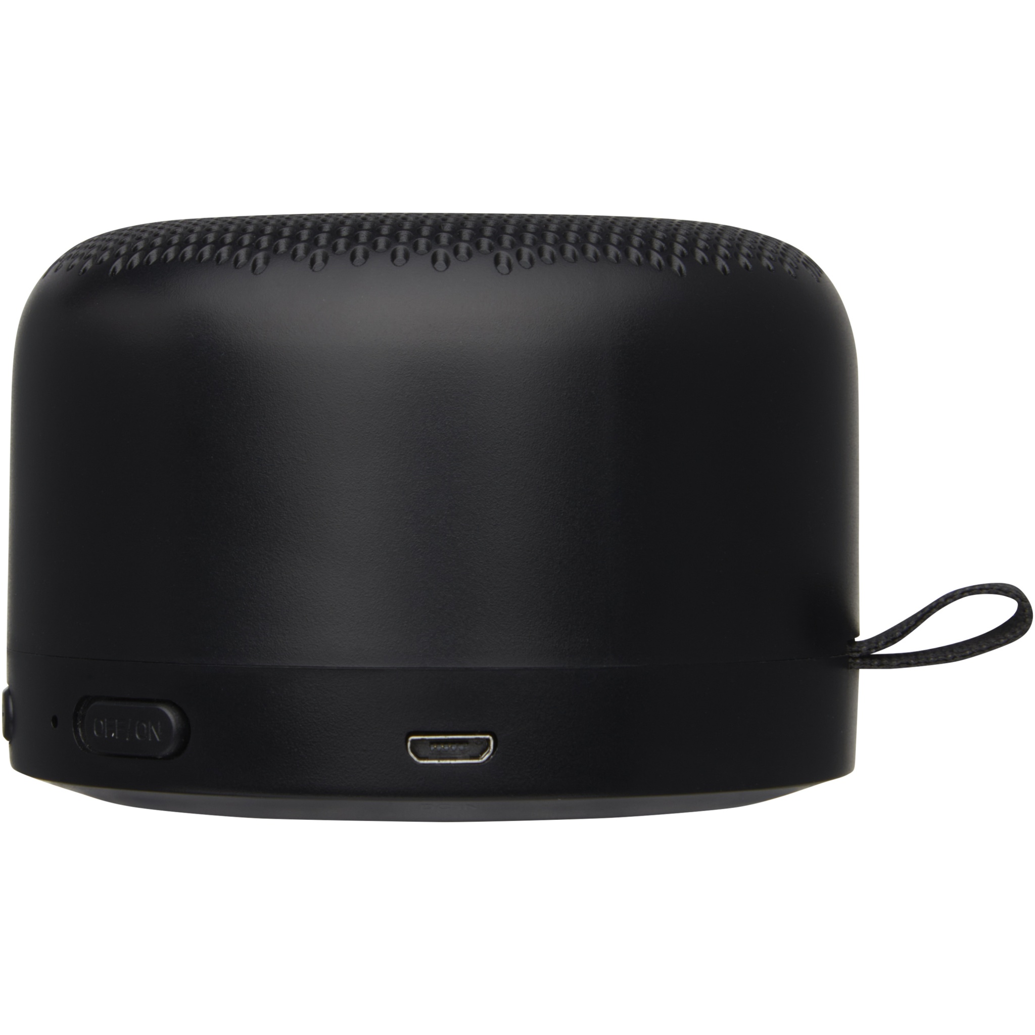 Kierrätetystä ABS-muovista valmistettu langaton kaiutin. Kyseinen standardi on käytössä myös silloin, kun osa tuotteesta on valmistettu kierrätetyistä materiaaleista. Voit nauttia suosikkimusiikistasi tällä tehokkaalla 5W:n langattomalla kaiuttimella, jonka Bluetooth® 5.0 takaa vakaan yhteyden ja laadukkaan äänen. Kantama jopa 10 metriä. Kaiuttimessa on 600 mAh:n ladattava Li-ion-akku, joka takaa jopa 4 tunnin toistoajan enimmäisäänenvoimakkuudella. Audiokaapelin liittämistä varten löytyy sisäänrakennettu AUX-liitin. Toimitetaan käyttöohjeet sisältävässä lahjapakkauksessa (molemmat kestävistä materiaaleista).