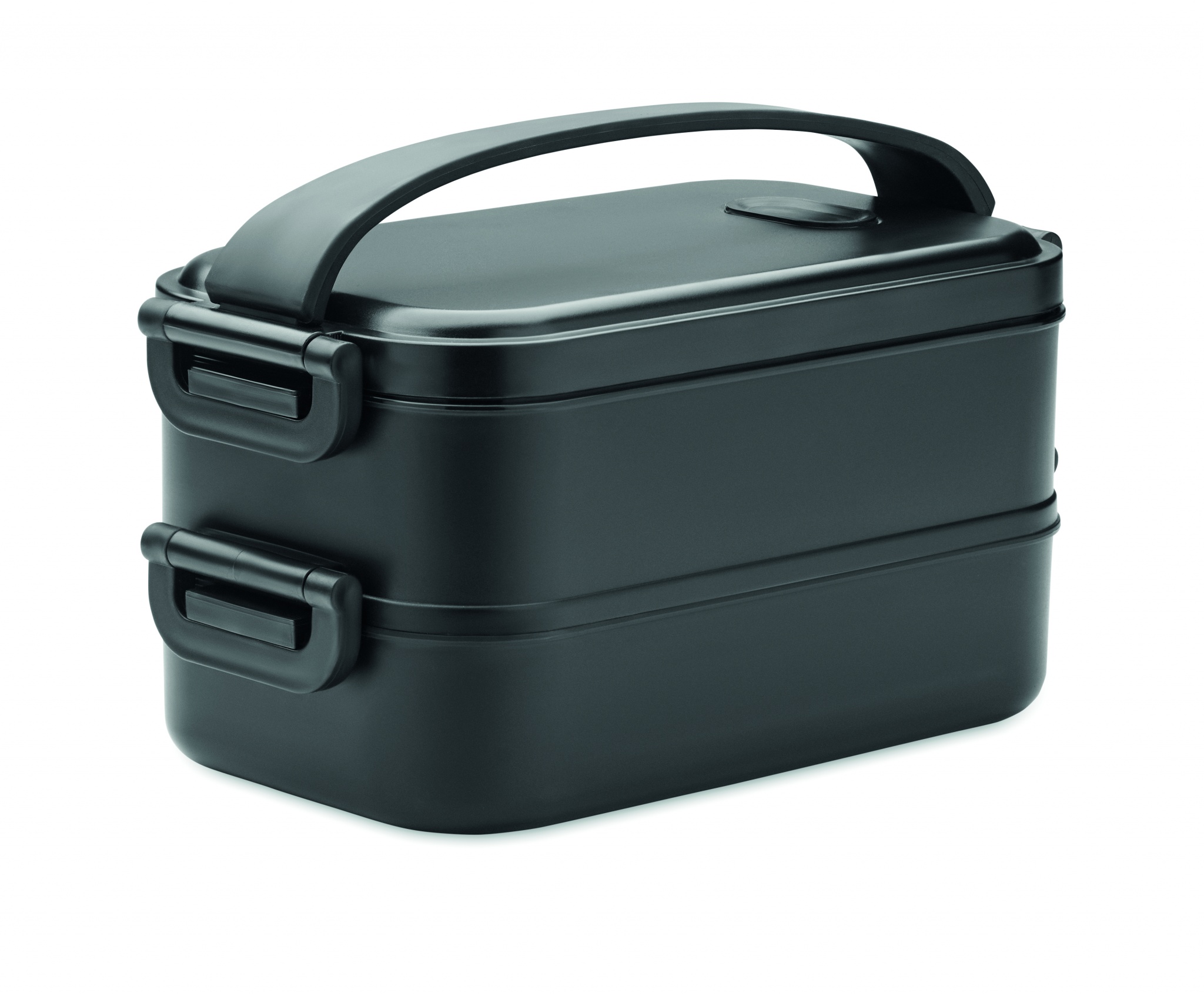 Kaksiosainen lounasrasia, valmistettu kierrätys PP:stä. Laatikossa on jakolaatikko, sivusoljet ja ilmatiivis kansi. Tilavuus: 800 ml (2x).