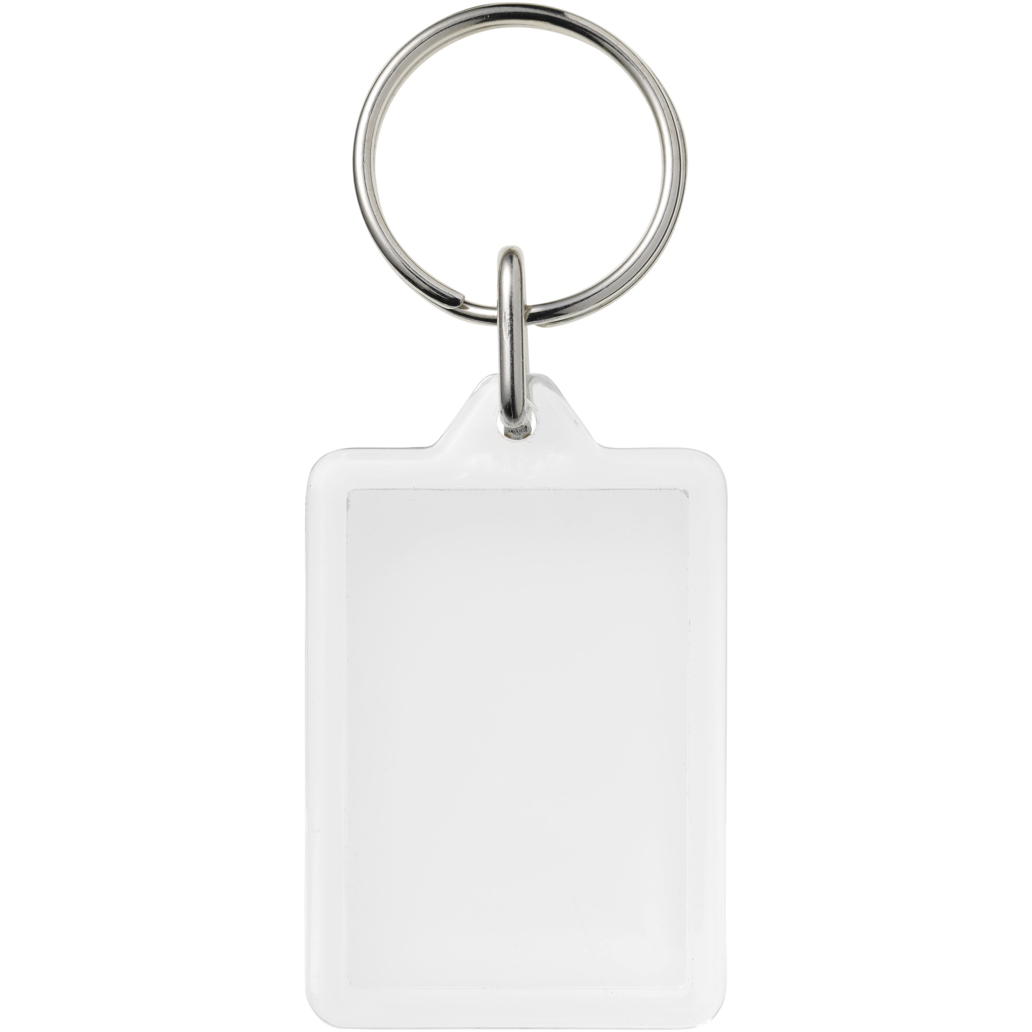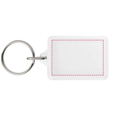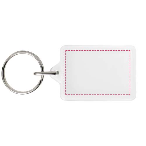 Kirkas suorakaiteenmuotoinen Y1-avaimenperä, jossa on metallinen avainrengas. Metallirengas tekee profiilista litteän, mikä on ihanteellista postituksen kannalta. Tulosteinsertin mitat: 3,5 cm x 2,4 cm.