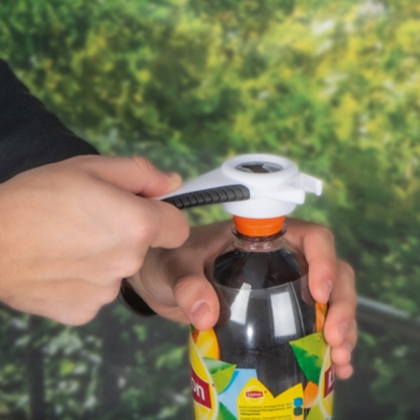 Lähes monikäyttöinen avaaja yksinkertaistaa tölkkien, pullojen ja purkkien avaamista. Se helpottaa elämää! Painamme logosi valkoiselle pinnalle.
