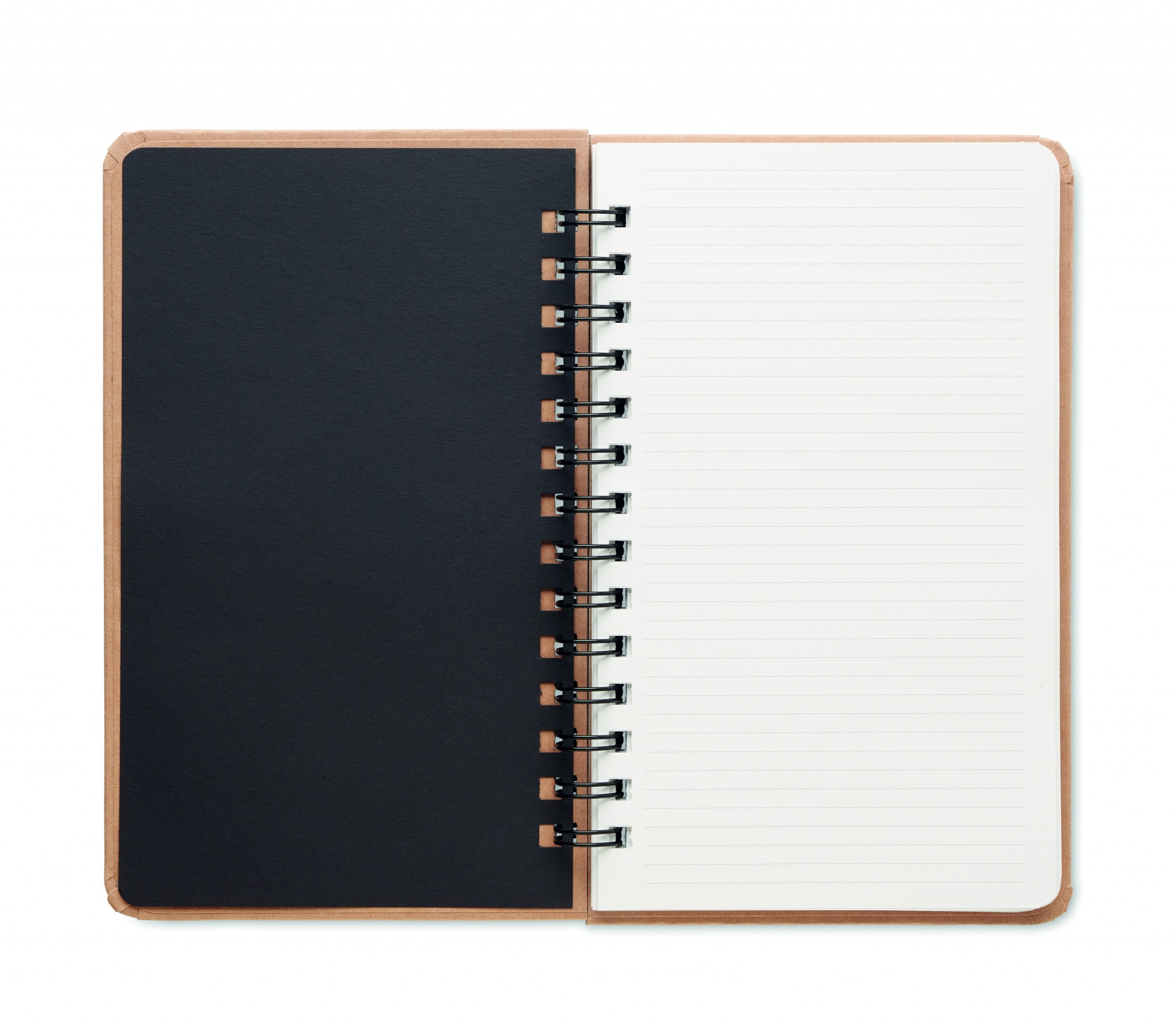 A5 kova paperi kantinen muistikirja, 144 viivoitettua sivua (72 arkkia). Sisältää kuusen siemeniä, kirjan sisäkannessa ohjeet siemenien istutukseen.