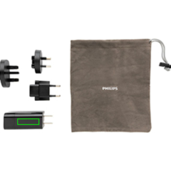 Philips huippunopea 30W PD matkalaturi. Kätevässä matkakotelossa. Mukana 4 pistoketta; sisäänrakennettu Yhdysvaltojen pistoke ja vaihdettavat Australian, Iso-Britannian ja Euroopan pistokkeet. Sisääntulo: 100-240V, 50-60Hz 0.7A. Ulostulo USB A 5V/2.4A, Tyyppi C 5V/3A, 9V/2A, 12V/1.5A. Pakattu Philips lahjapakkaukseen.