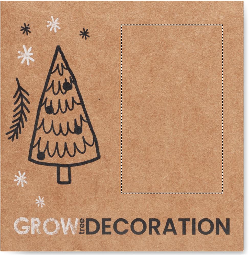 Puinen pallon muotoinen koriste, jossa on juuttinarua ja kuusen siemeniä. Toimitetaan ruskeassa paperikuoressa.