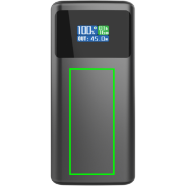 Logo trade mainoslahja ja liikelahja tuotekuva: Quantum RCS PD45W nopea 10 000 mAh -varavirtalähde näytöllä