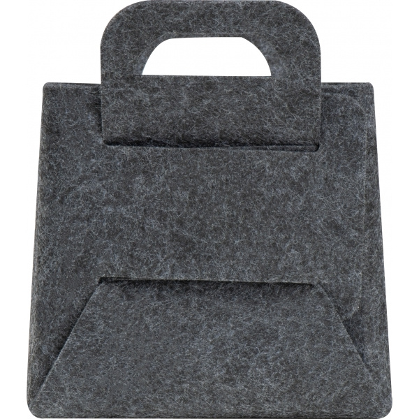 RPET-huovasta valmistettu huopakori. Taitettava kori kahvalla, kestävä ja joustava. Ihanteellinen pienten tavaroiden säilyttämiseen.
