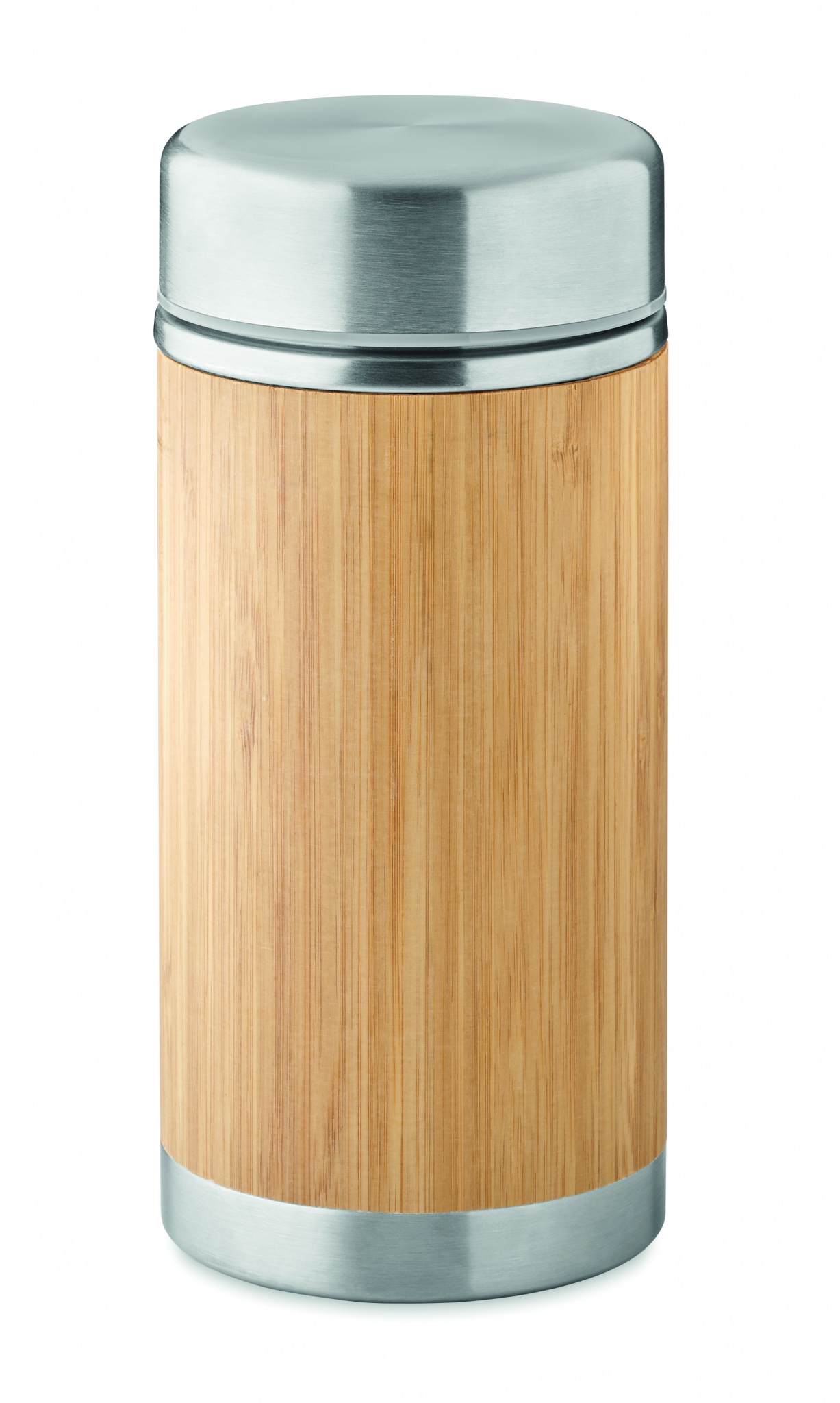 Kaksiseinäinen ruostumattomasta teräksestä valmistettu ruokatermos jossa on kierrekorkki ja ulkopinta bambua. Tilavuus 600 ml.
