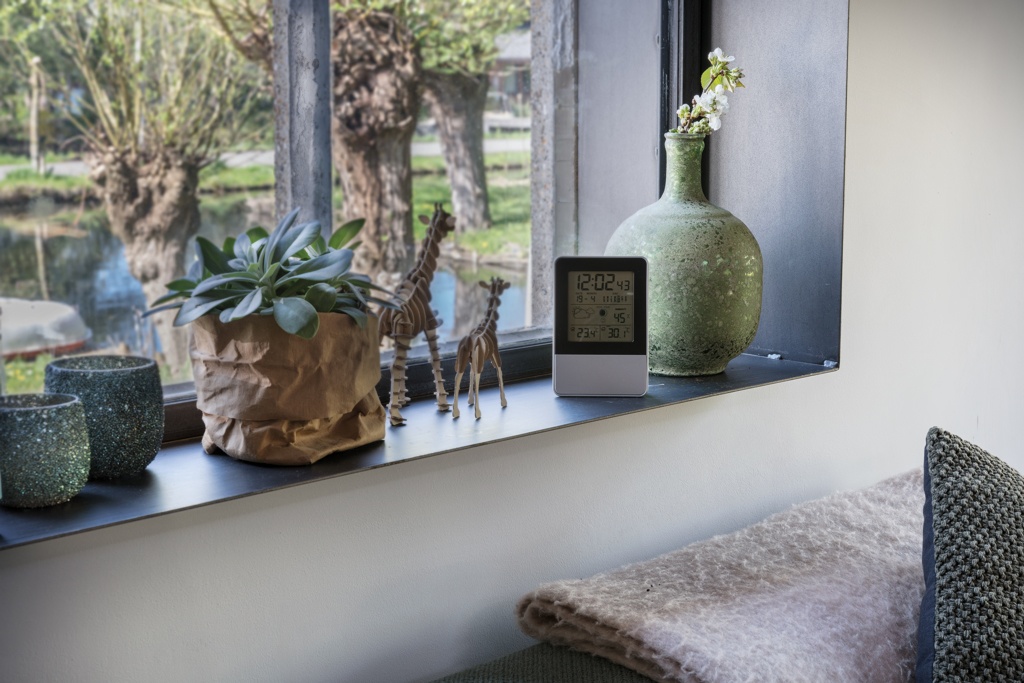 Sisä-/ulkosääasema LCD-näytöllä ja erityisellä ulkoanturilla. Toiminnot: Aika ja kalenteri, sisä-/ulkolämpötila, sääennuste, ilmankosteus ja hälytys.