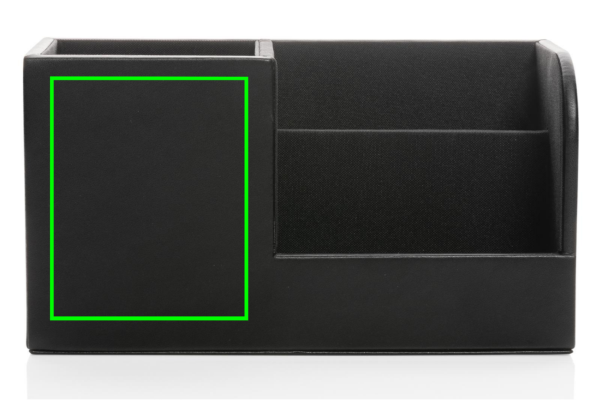 Ylellinen toimistotarviketeline työtarvikkeillesi. Valmistettu RCS (Recycled Claim Standard) sertifioiduista materiaaleista. RCS on standardi, jolla varmennetaan tuotteen kierrätetty materiaali koko toimitusketjun ajan. Sileä ja ylellinen teline päivittää minkä tahansa pöydän upeaksi työympäristöksi. Ulkokuori valmistettu kierrätetystä RCS-sertifioidusta PU:sta. Sisämateriaali: MDF puuta. Kierrätetyn materiaalin kokonaismäärä: 6.5% perustuen tuotteen painoon. PVC-vapaa.