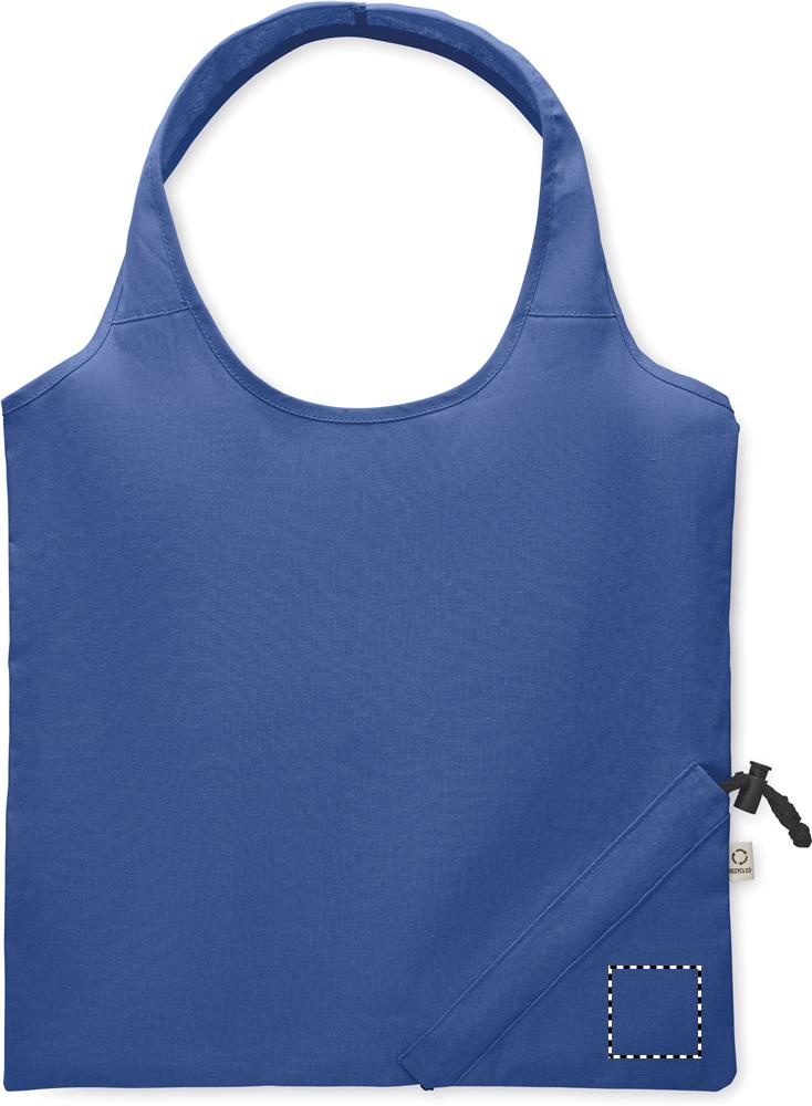 Taitettava ostoskassi (70 % kierrätettyä puuvillaa ja 30 % RPET) valmistettu kierrätetystä ennen kulutusta valmistettavista puuvillasta. 140 g/m².