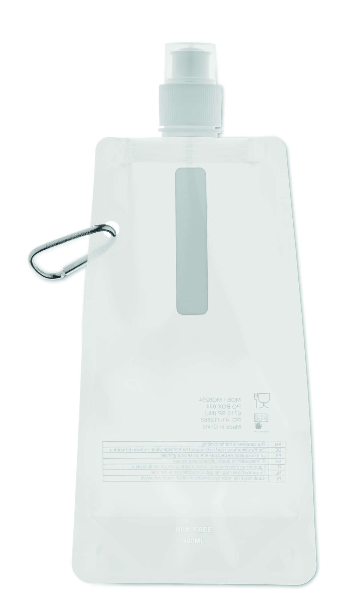 Taitettava vesipullo PET, Valkoinen