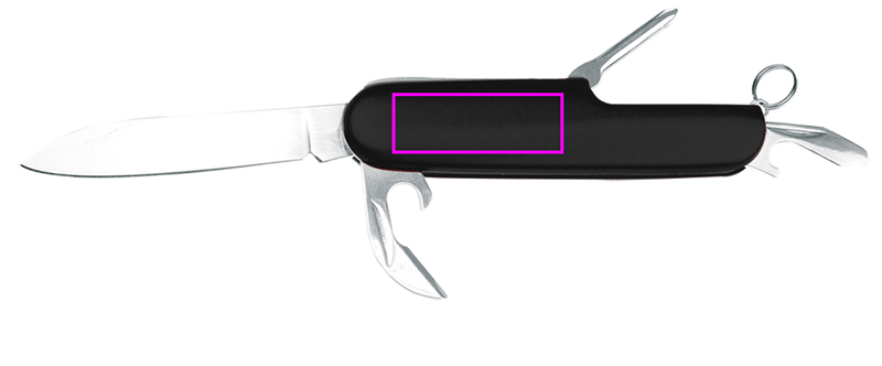 Kätevä ruostumattomasta teräksestä valmistettu taskuveitsi, jossa on seitsemän osaa, mukaan lukien iso terä, tölkin- ja pullonavaaja, korkkiruuvi, Phillips ja uraruuvimeisseli sekä avaimenperä. Kaivertamme logosi alumiinikuoreen.