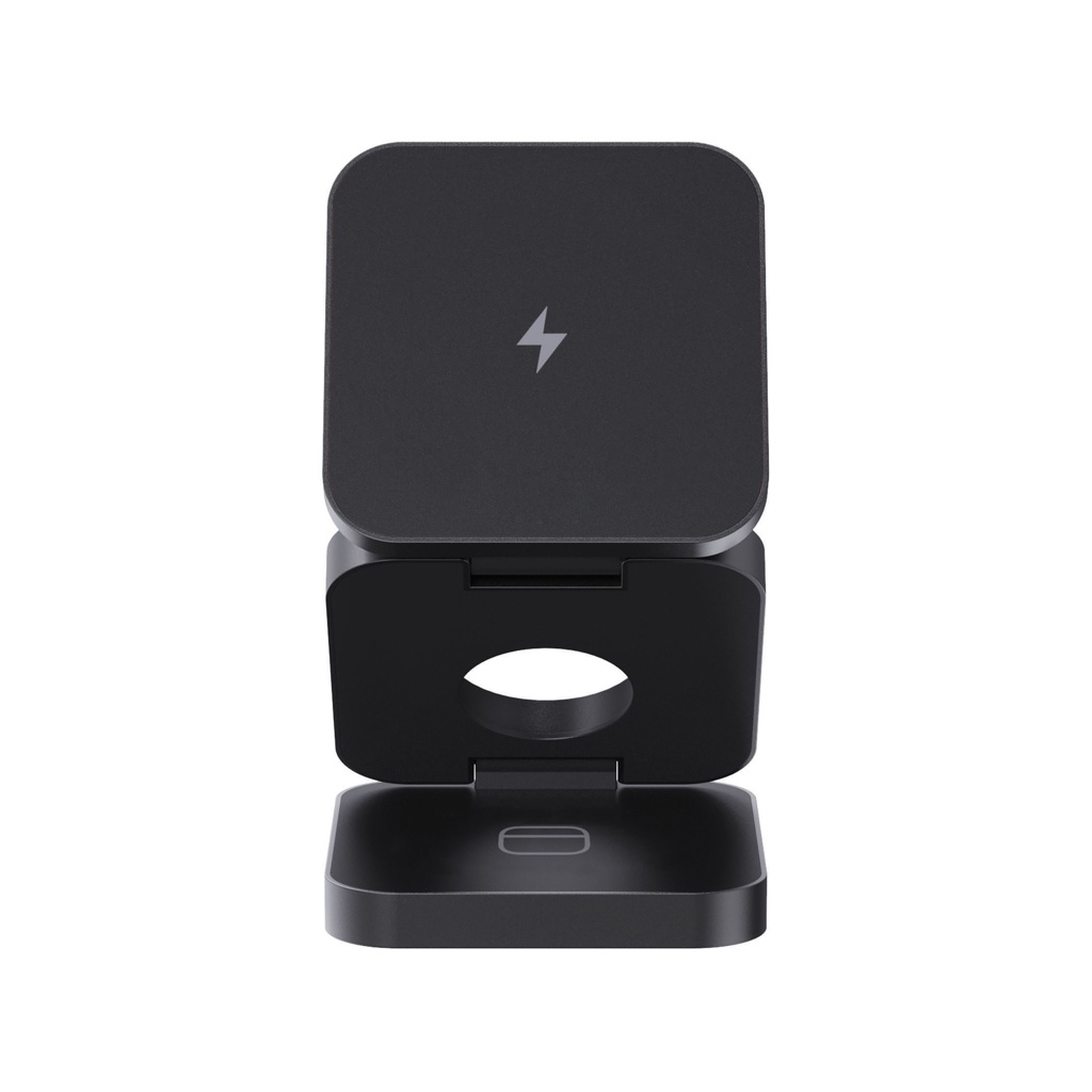 Ylellinen ja kokoontaitettava 3-in-1 langaton laturi, joka on valmistettu RCS-kierrätetystä ABS muovista ja RCS-kierrätetystä alumiinista. Kokonaiskierrätetty sisältö: 46 % tuotteen kokonaispainosta. RCS-sertifiointi takaa täysin sertifioidun toimitusketjun kierrätysmateriaaleille. Langattomassa laturissa on magneettinen 15 W:n langaton laturi ja ylimääräinen 5 W:n langaton laturi, joka sopii kuulokekoteloihin tai muihin pieniin langattomasti ladattaviin laitteisiin, sekä 2,5 W:n langaton laturi älykelloille (vain Apple-kellot). Mukana RCS-sertifioitu 120 cm kierrätetty TPE-kaapeli. Pakattu FSC® mix kraft -pakkaukseen. Tuote ja tarvikkeet 100 % PVC-vapaita. Syöttö: 1: 9V/3A optimaaliseen käyttöön. Lähtö: Puhelin: 9V/1.1A; 9V/1.67 A/(15W), Kuulokkeet: 9V/1.67 A/(15W): 5V/1A (5W), kello: 5V/0.5A. PVC-vapaa.