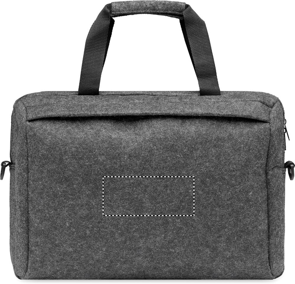 15 tuuman kannettava tietokonelaukku RPET-huovasta, jossa on yksi sisäinen päälokero ja yksi vetoketjullinen etutasku. Sisältää irrotettavan ja säädettävän olkahihnan. Trolleypidike kääntöpuolella.