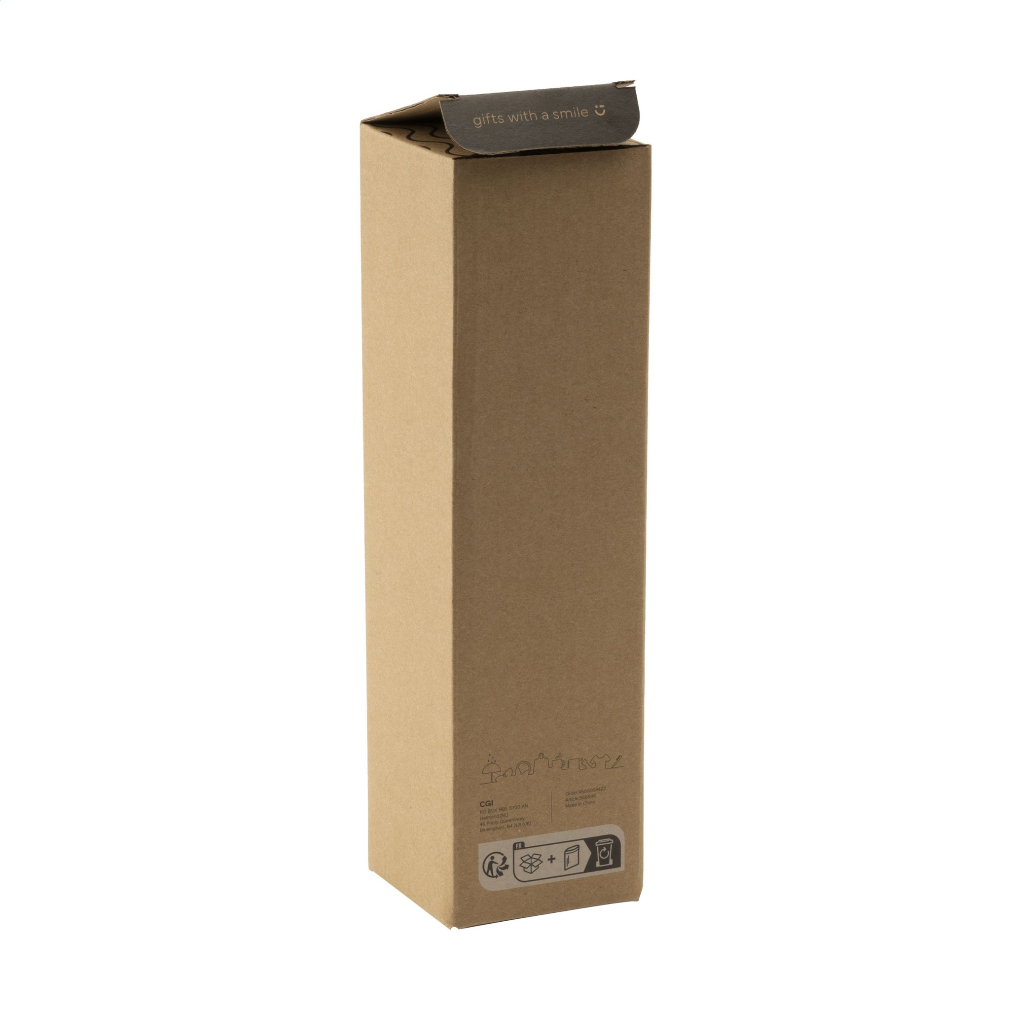 Kaksiseinäinen, tyhjiöeristetty, ruostumattomasta teräksestä valmistettu vesipullo/termospullo. Vuodonkestävällä kierrekorkilla. Tässä pullossa on viehättävä mattapintainen pinnoite. Pohjan silmiinpistävä korkkiyksityiskohta antaa tälle pullolle tyylikkään mutta luonnollisen ilmeen. Soveltuu kylmän tai kuuman veden lämpötilan ylläpitämiseen. Tilavuus 470 ml. Jokainen tuote toimitetaan erillisessä ruskeassa pahvilaatikossa.