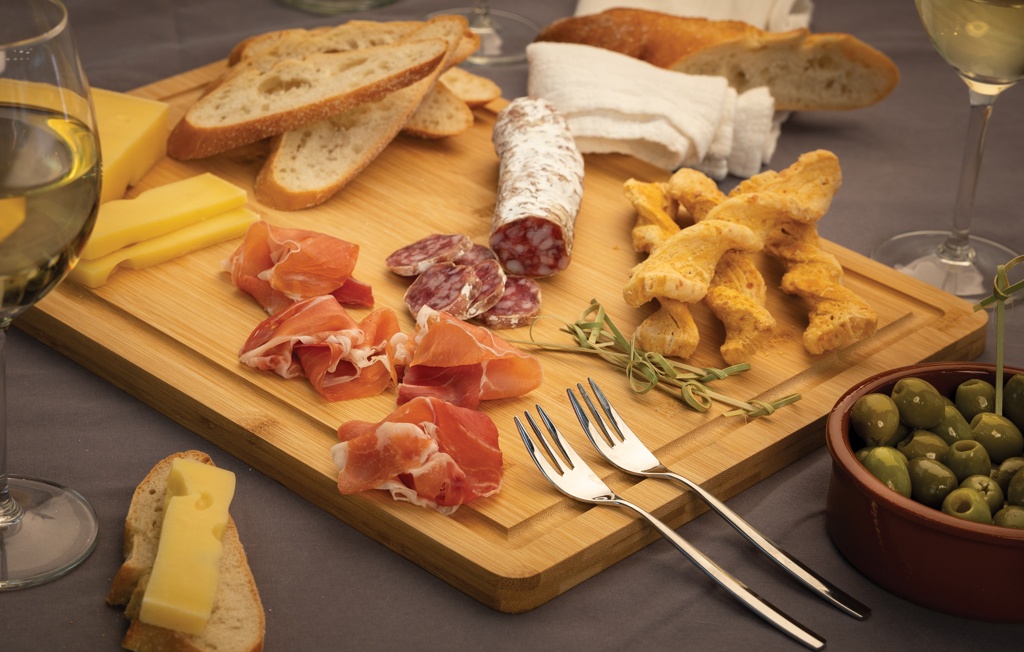 Tämä bambuinen leikkuulauta on olennainen tuote jokaiseen keittiöön. Tämä monikäyttöinen tuote on enemmän kuin vain leikkuulauta, mikä tekee siitä täydellisen sekä ruoan valmistukseen että tarjoamiseen. Leikkuulaudassa mehukouru, joka estää vuotamisen. Pakattu ylelliseen kraft-laatikkoon. Leikkuulauta ei ole käsitelty, mutta sen voi halutessa öljytä. Ei sovi astianpesukoneeseen, vain käsinpesu.