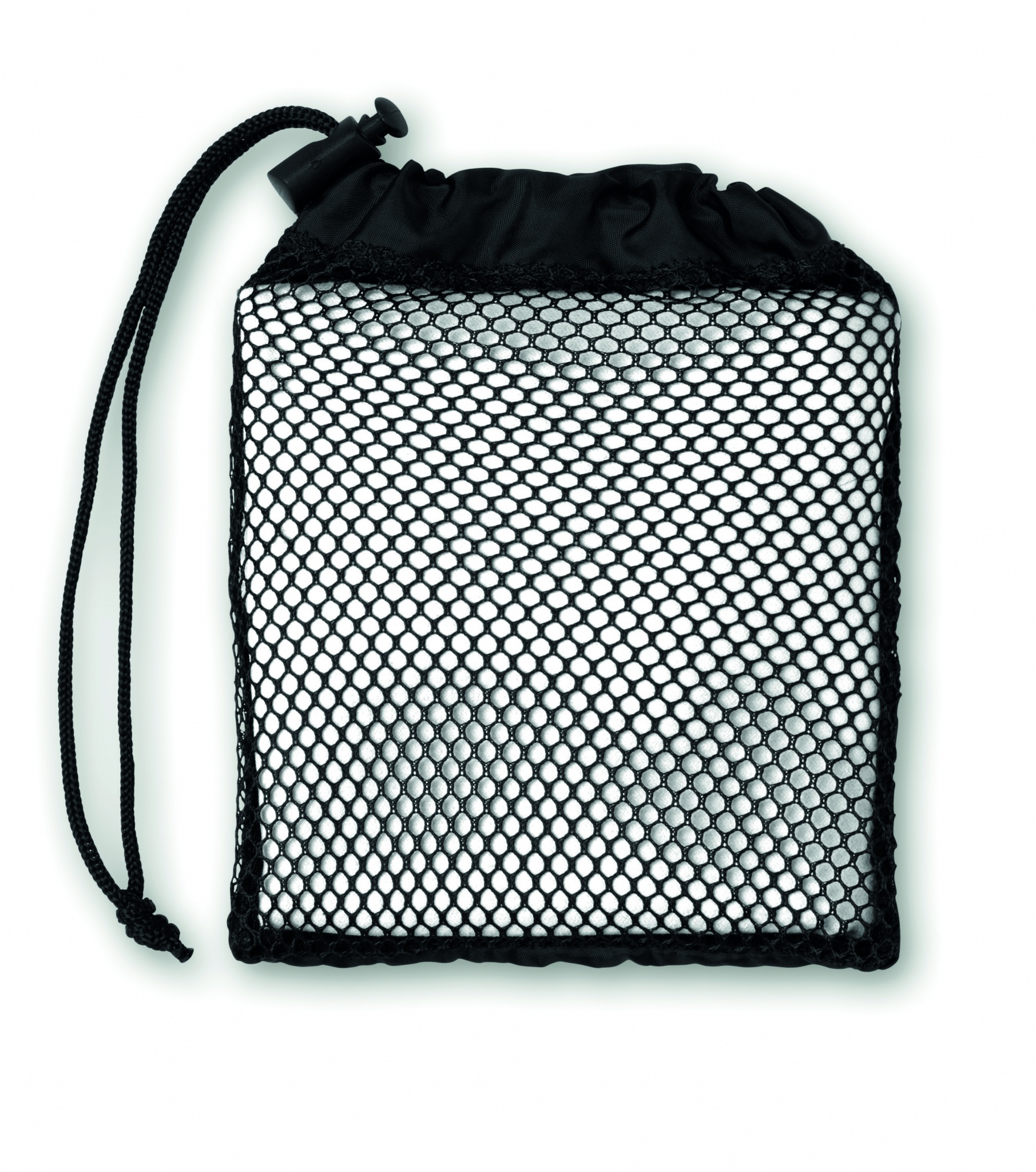 Urheilupyyhe valmistettu 20% polyamidista ja 80% mikrokuidusta, sisältää verkkopussin pyyhkeen säilyttämiseen.