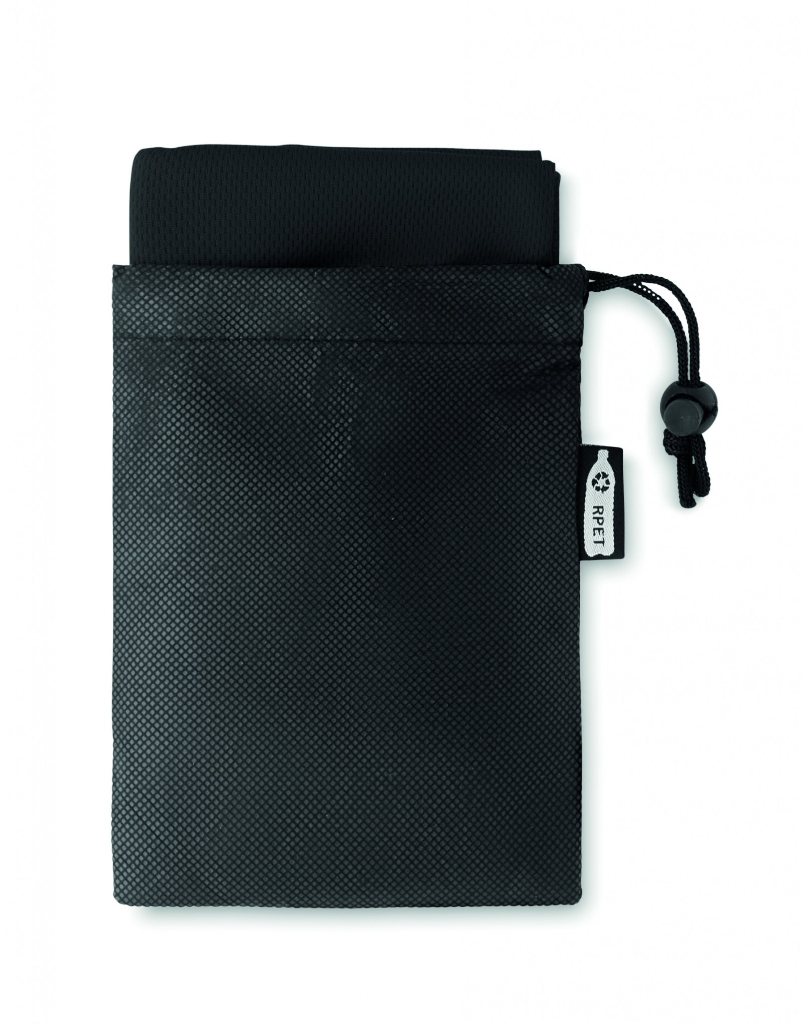 RPET- urheilupyyhe, korkea veden imukyky. Sisältää RPET verkkopussin.