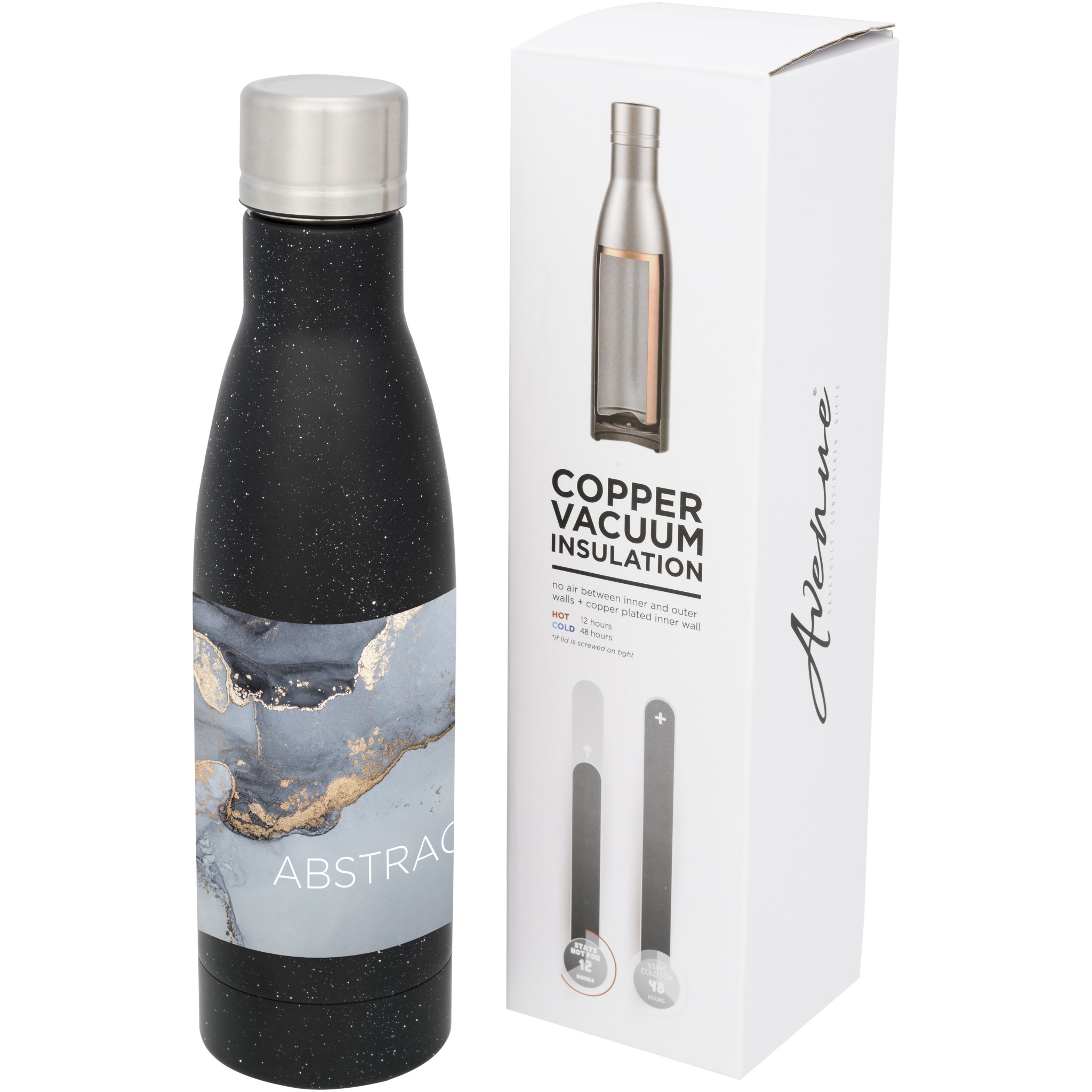 Juomat pysyvät 12 tuntia kuumina tai 48 tuntia kylminä pilkullisessa kuparityhjiöeristetyssä Vasa-pullossa. Tuplaseinäinen ruostumattomasta teräksestä valmistettu, tyhjiöeristetty ja sisäpuolelta kuparipinnoitettu pullo pitää juomat tulikuumina tai jääkylminä tarpeen mukaan. Pullossa on trendikäs, pilkullinen viimeistely. BPA-vapaa, testattu ja Saksan elintarviketurvallisuuslainsäädännön (LFGB) mukaisesti hyväksytty, ftalaattipitoisuus testattu REACH-asetusten mukaisesti. Tilavuus: 500 ml. Toimitetaan lahjapakkauksessa.