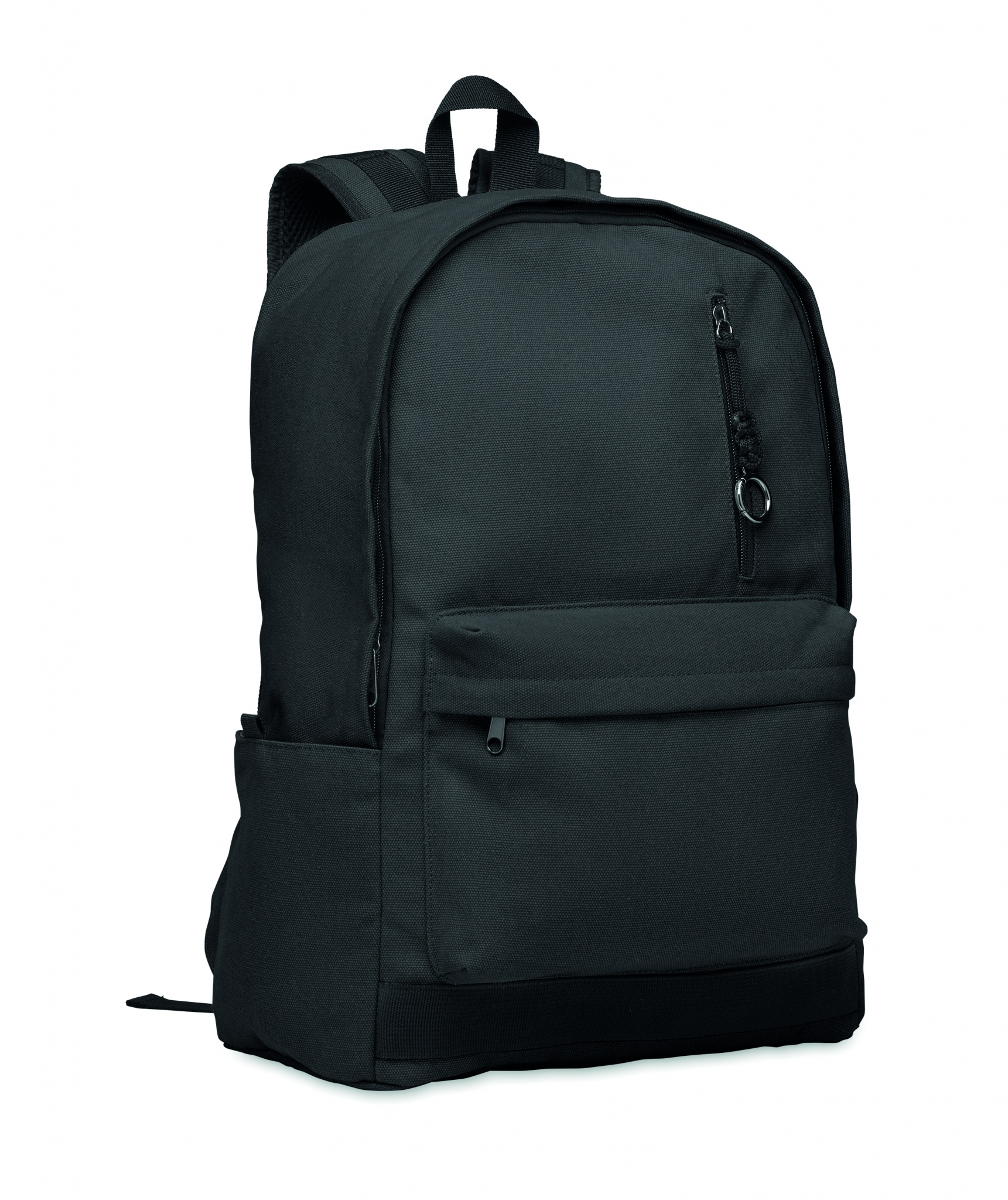 15 colių nešiojamojo kompiuterio kuprinė, pagaminta iš perdirbtos ikivartojimo medvilnės su pritaikoma spauda, Juoda