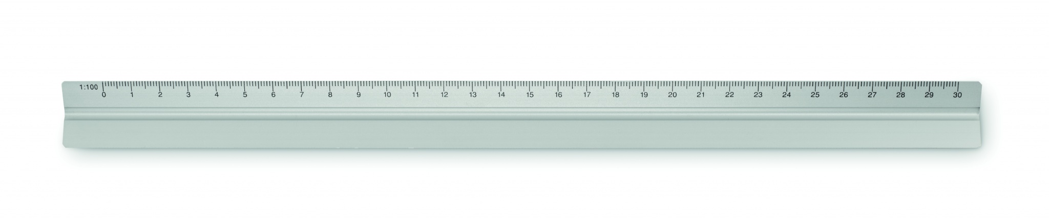 30 cm trikampio aliuminio architektūrinio mastelio liniuotė. 3 pusės ir 5 skirtingos matavimo skalės 1:20, 1:25, 1:50, 1:75, 1:100.