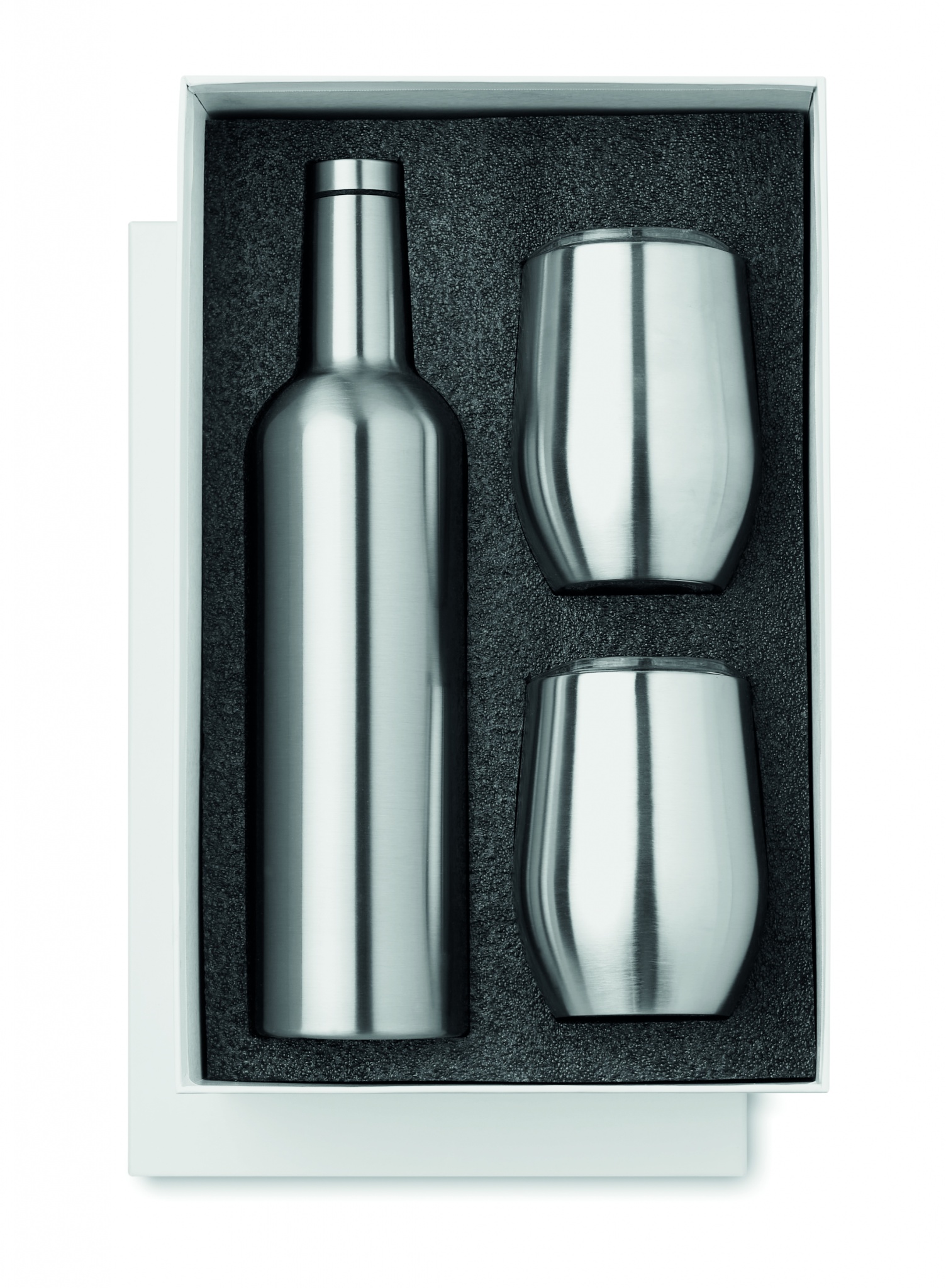Dvigubų sienelių butelių ir puodelių rinkinys, Mattas Sidabras