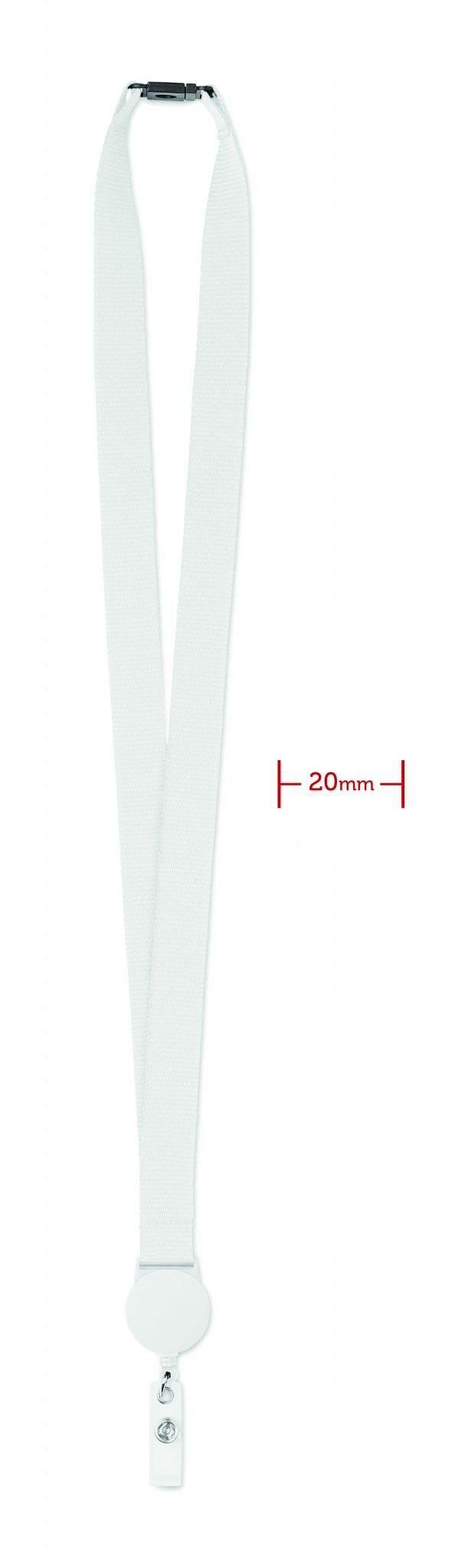 Virvelė iš poliesterio su ištraukiamu ženkliuko laikikliu ir saugos atskyrimu. 20 mm pločio. Sublimacinis spausdinimas galimas tik ant balto gaminio.