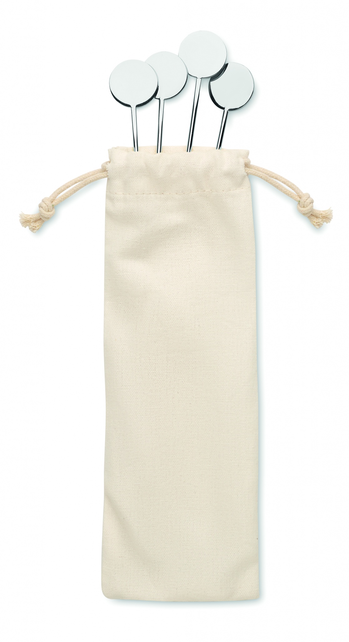 4 nerūdijančio plieno gėrimų maišytuvų rinkinys medvilniniame maišelyje su virvele.