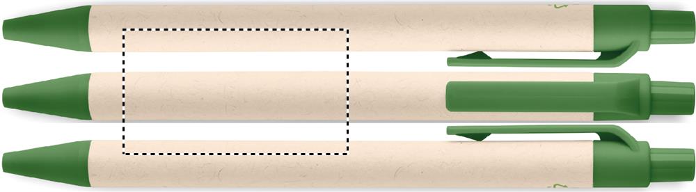 Tušinukas su mygtukais su perdirbtų pieno dėžučių statine (70 % perdirbta pieno dėžutė ir 30 % perdirbto popieriaus) ir PLA dalimis (iš 100 % biologiškai skaidžių kukurūzų). Mėlynas rašalas.