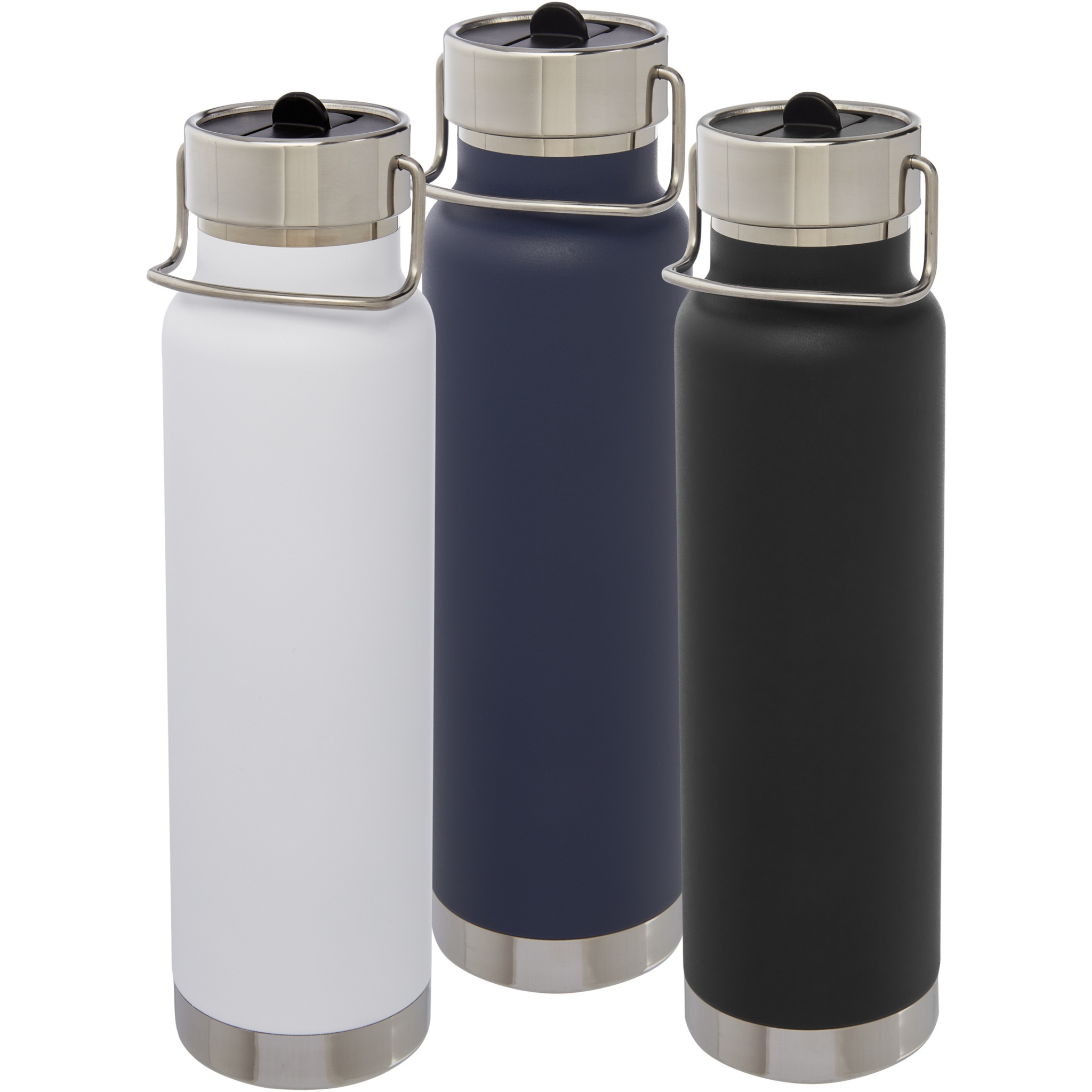 Patvari ir didelė dvisienė nerūdijančio plieno vakuuminė konstrukcija su varine izoliacija, kuri kelias valandas išlaiko gėrimus karštus arba šaltus. Konstrukcija taip pat apsaugo nuo kondensato susidarymo buteliuko išorėje, o dėl madingos miltelinės dangos jis yra ypač patvarus. Nerūdijančio plieno užsukamas sandarus dangtelis su integruotu šiaudeliu ir patvaria nerūdijančio plieno rankine kilpa. Plati anga, kad būtų lengva užpildyti, išpilti ir valyti. Be BPA, patikrintas ir patvirtintas pagal Vokietijos maisto saugaus teisės aktus (LFGB). Išbandyta ir patvirtinta dėl ftalatų kiekio pagal REACH reglamentą. Puikiai tinka ledo kubeliams. Tūrio talpa 750 ml. Rekomenduojamas plovimas rankomis. Pateikta perdirbto kartono dovanų dėžutėje.