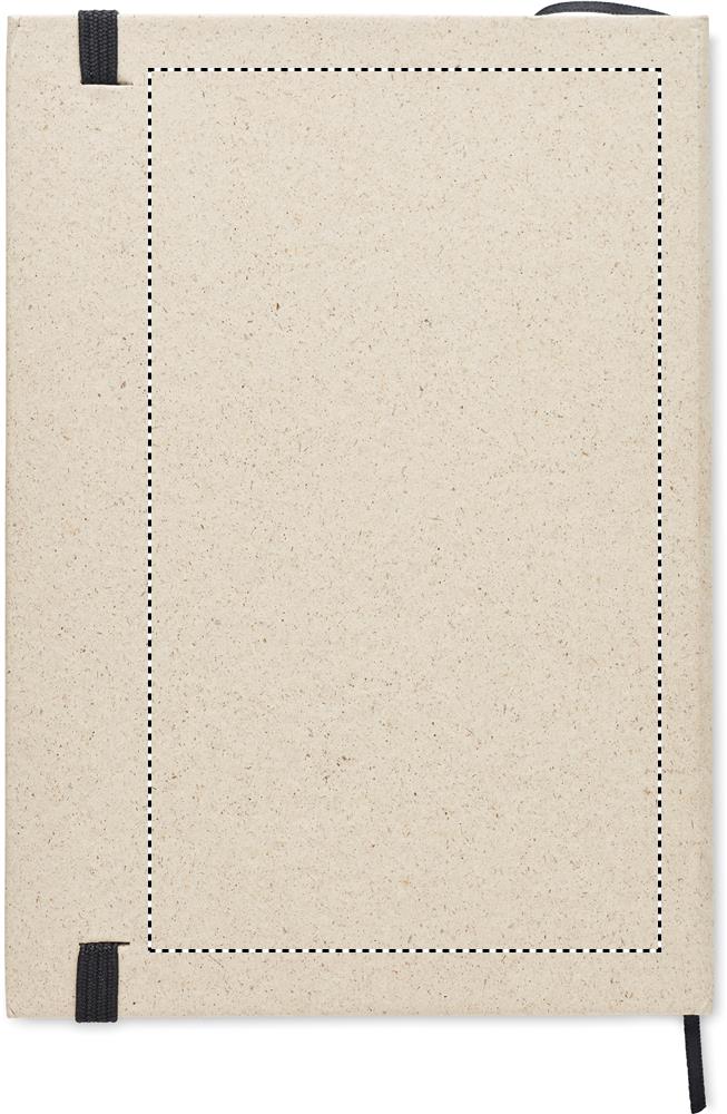 A5 zāles papīra piezīmju grāmatiņa. Ciets zāles papīra vāks. Casebound. 160 zāliena papīra izklātas lapas (80 loksnes). 95 gsm papīrs. Elastīga aizdares siksna un lentes grāmatzīme. Zāles papīrs, kas satur 40% zāles šķiedru.