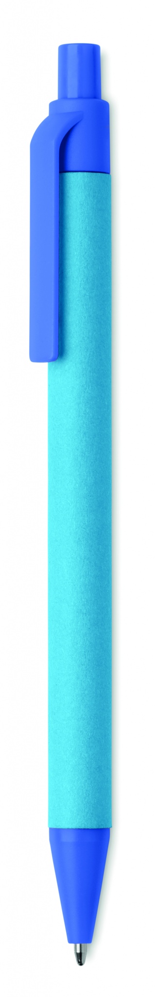 Spiedpogas lodīšu pildspalva ar papīra mucu un 100% PLA kukurūzas piederumiem. Zilā tinte.