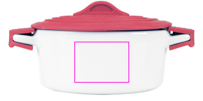 Porcelāna pods (piemērots trauku mazgājamā mašīnā, cepeškrāsnī un mikroviļņu krāsnī), ar karstumizturīgiem silikona rokturiem (līdz 250 °C). Jūsu logotips tiks uzdrukāts uz katla keramikas pārnesumā.