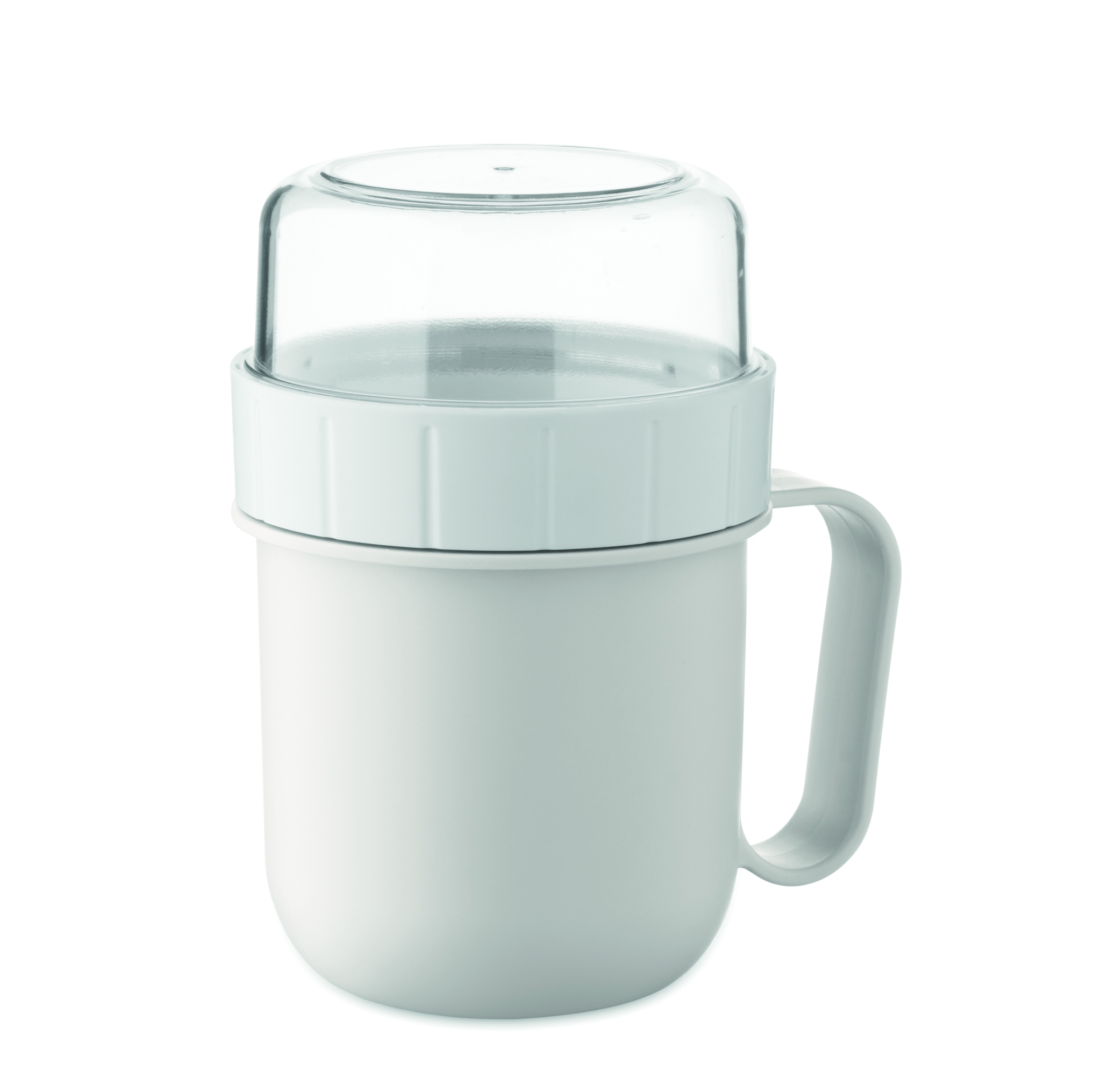 Brokastu vai vēlās brokastis līdzņemšanai paredzēta krūzīte PP un PS vāka traukā. Sastāv no 2 atsevišķiem traukiem, lai sastāvdaļas turētos atsevišķi. Tilpums: 450 ml un 160 ml. Bez noplūdes.