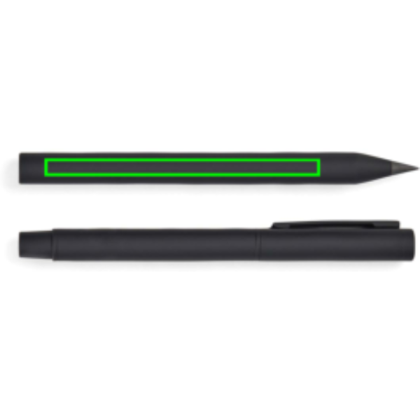 Šajā modernajā un gludajā komplektā ietilpst divas pildspalvas: mūžīgā pildspalva un klasiska lodīšu pildspalva ar vāciņu un klipsi. Šīs pildspalvas ir izstrādātas gan stilam, gan funkcionalitātei, un tās ir izgatavotas no RCS sertificēta otrreizēji pārstrādāta nerūsējošā tērauda, un tām ir gumijas virsmas pārklājums ērtai satvērienam un matēta apdare. Abām pildspalvām ir līdzsvarots svars, kas nodrošina stabilitāti un bez piepūles rakstīšanu. Mūžīgā pildspalva piedāvā neierobežotu rakstīšanu. Lodīšu pildspalvai ir smalks 1,00 mm uzgalis, un tā nodrošina vienmērīgu, konsekventu rakstīšanu ar dokumentāli zilu tinti, kas ilgst līdz 1200 metriem. Sertificēts ar RCS (Recycled Claim Standard), RCS sertifikācija garantē, ka visa pārstrādāto materiālu piegādes ķēde ir sertificēta. Kopējais pārstrādātā saturs ir balstīts uz produkta kopējo svaru. Šis produkts satur 52% RCS sertificēta pārstrādāta alumīnija un 10% RCS sertificēta nerūsējošā tērauda.