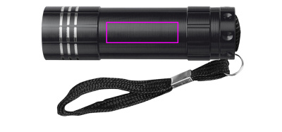 Алюминиевый фонарик COB с шестью COB. Мы наносим ваш логотип с помощью лазерной гравировки на центральную часть. Без трех батареек AAA (закажите их немедленно, см. последнюю страницу или артикул 999400).