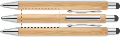 Ручка стилус шариковая из бамбука с блестящей хромированной фурнитурой. Синие чернила. Бамбук является натуральным продуктом, могут быть небольшие различия в цвете