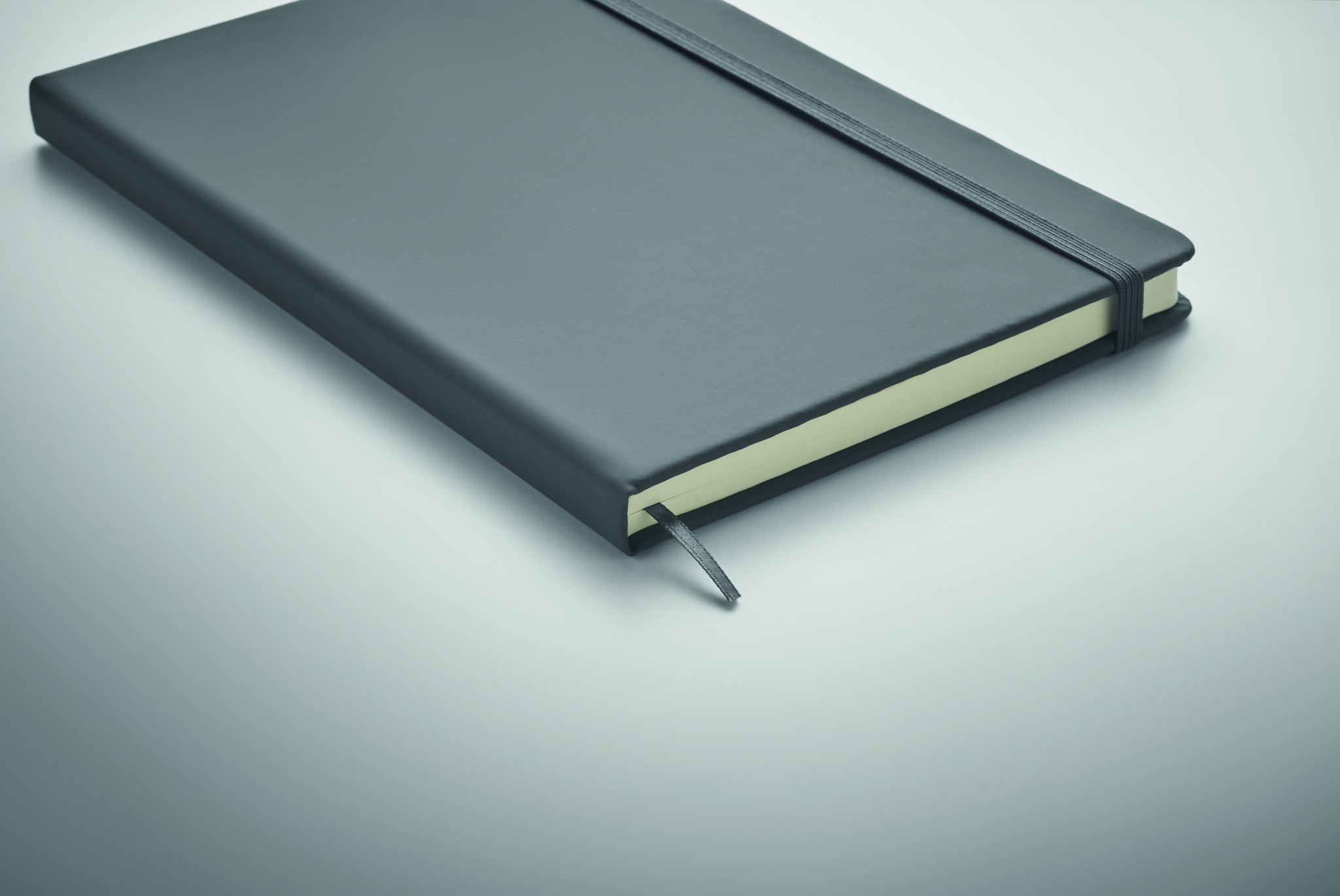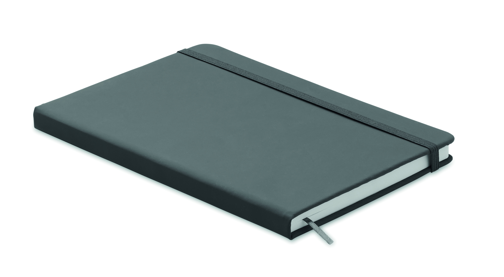Блокнот формата А5 в обложке из полиуретана на резинке. 96 линованых страниц.